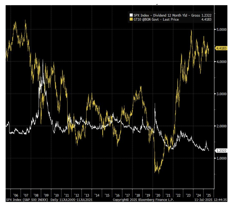 S&P Dividend Yield vs 10 Year Treasury Yield