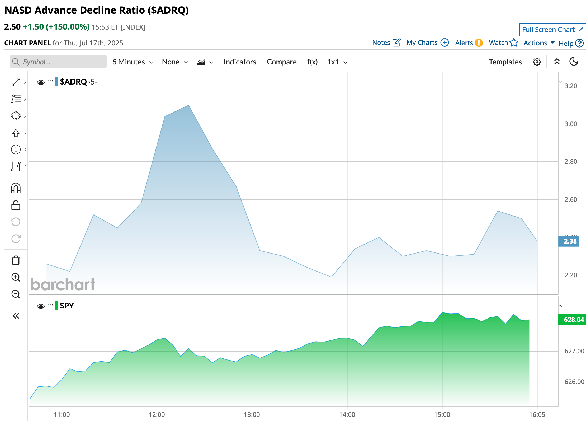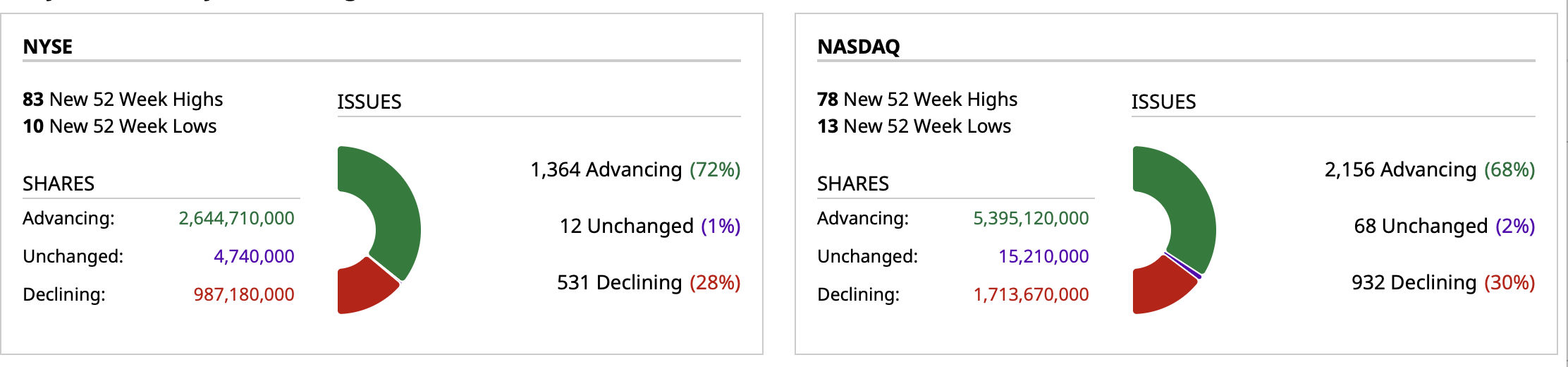 - NASDAQ volume 18% above its one-month average;