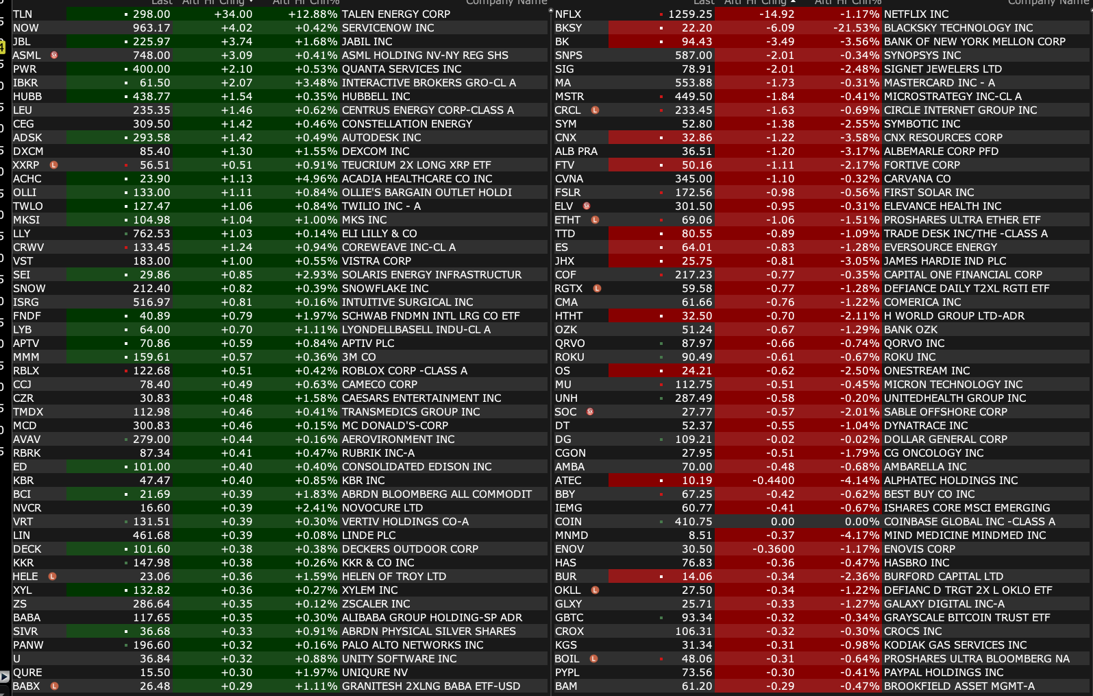-MU -3.6% (weakness in sympathy with SK Hynix following Goldman downgrade)
