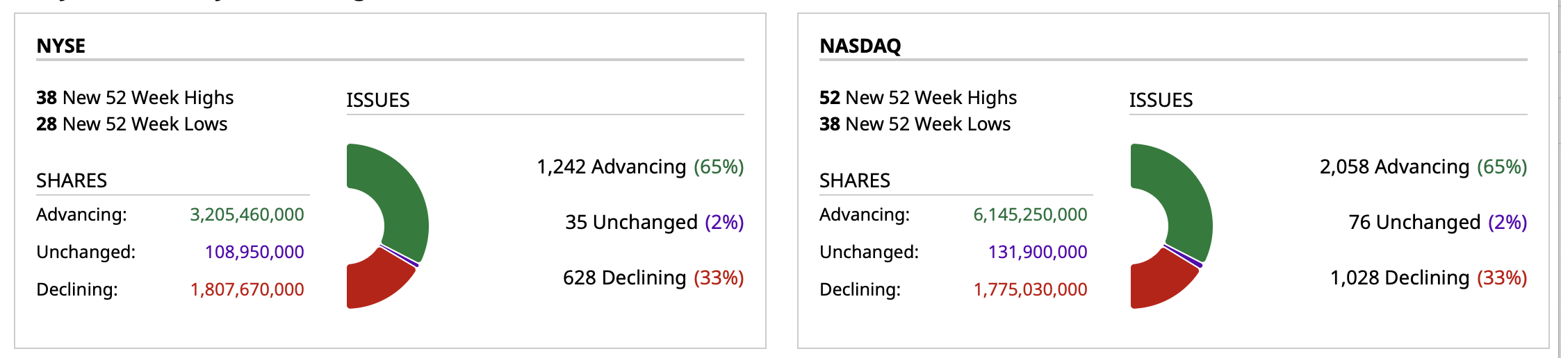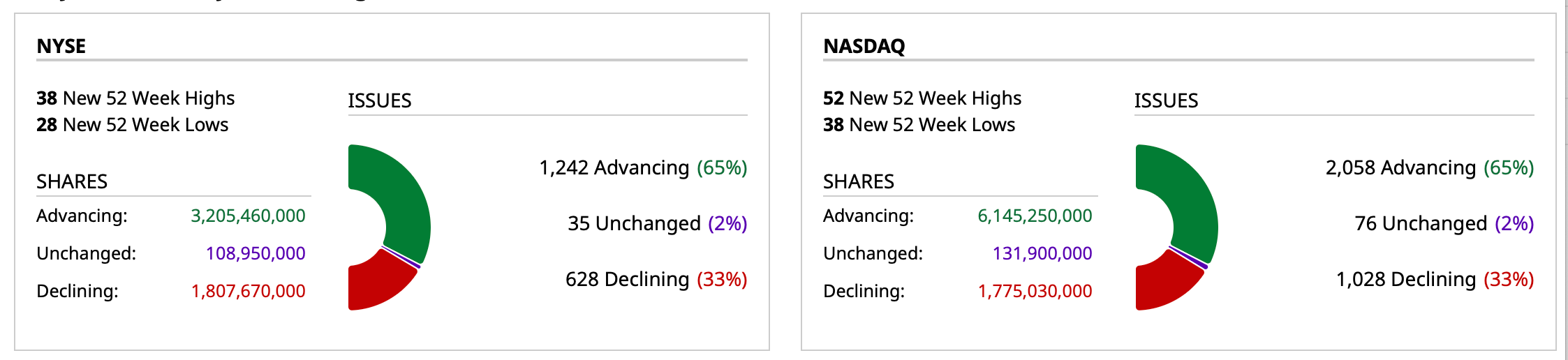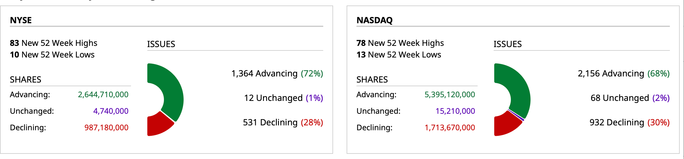 - Nasdaq volume is 20% above its one-month average;