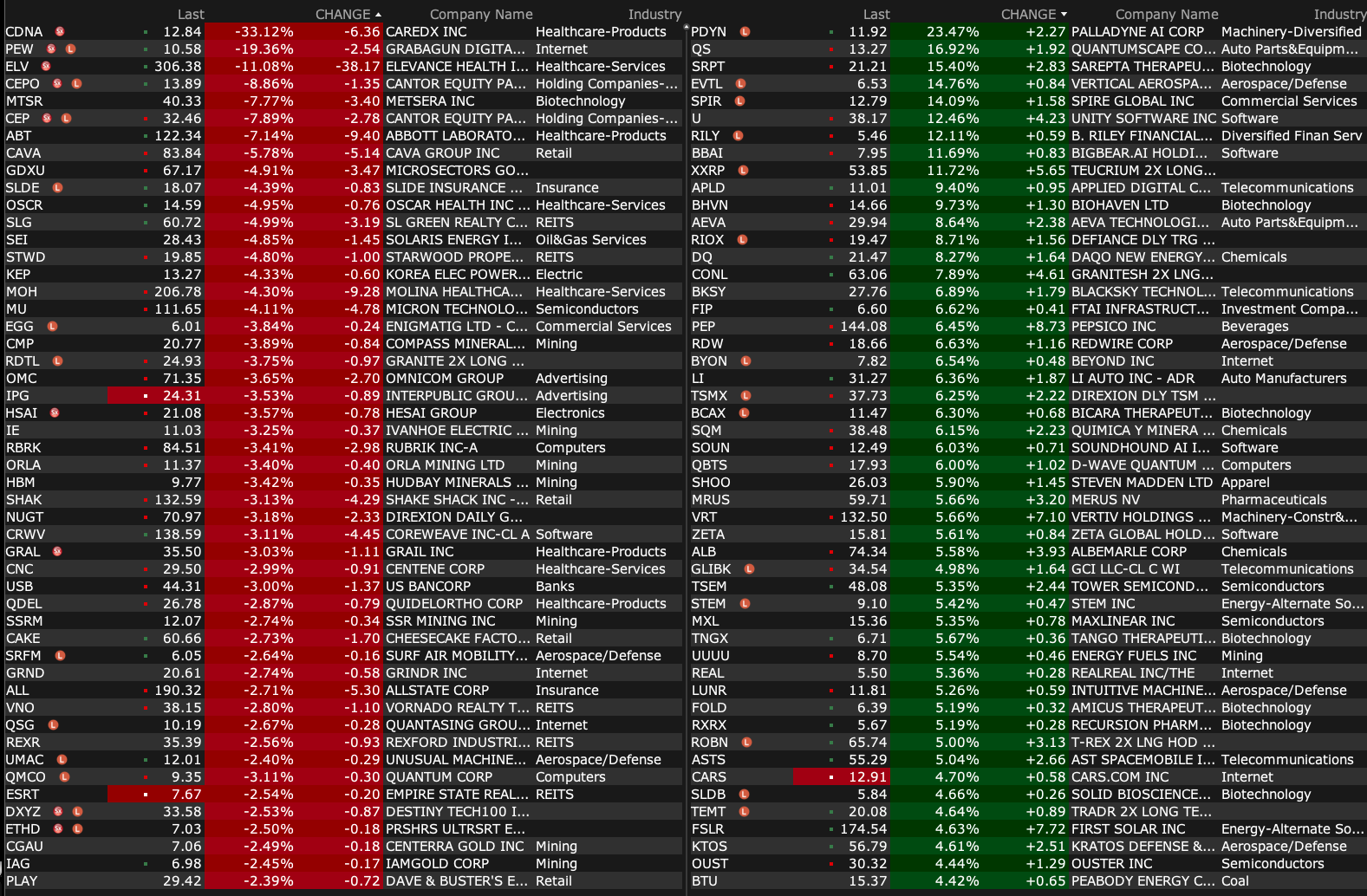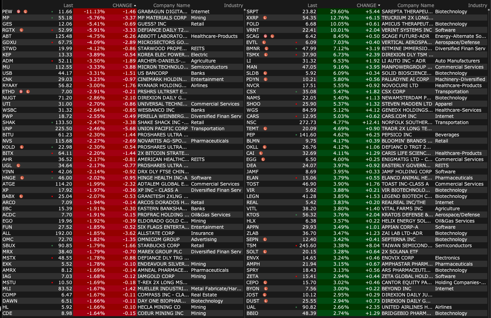 -PRAX +6.3% (receives FDA Breakthrough Therapy Designation for Relutrigine for treatment of Seizures associated with SCN2A and SCN8A Developmental and Epileptic Encephalopathies)