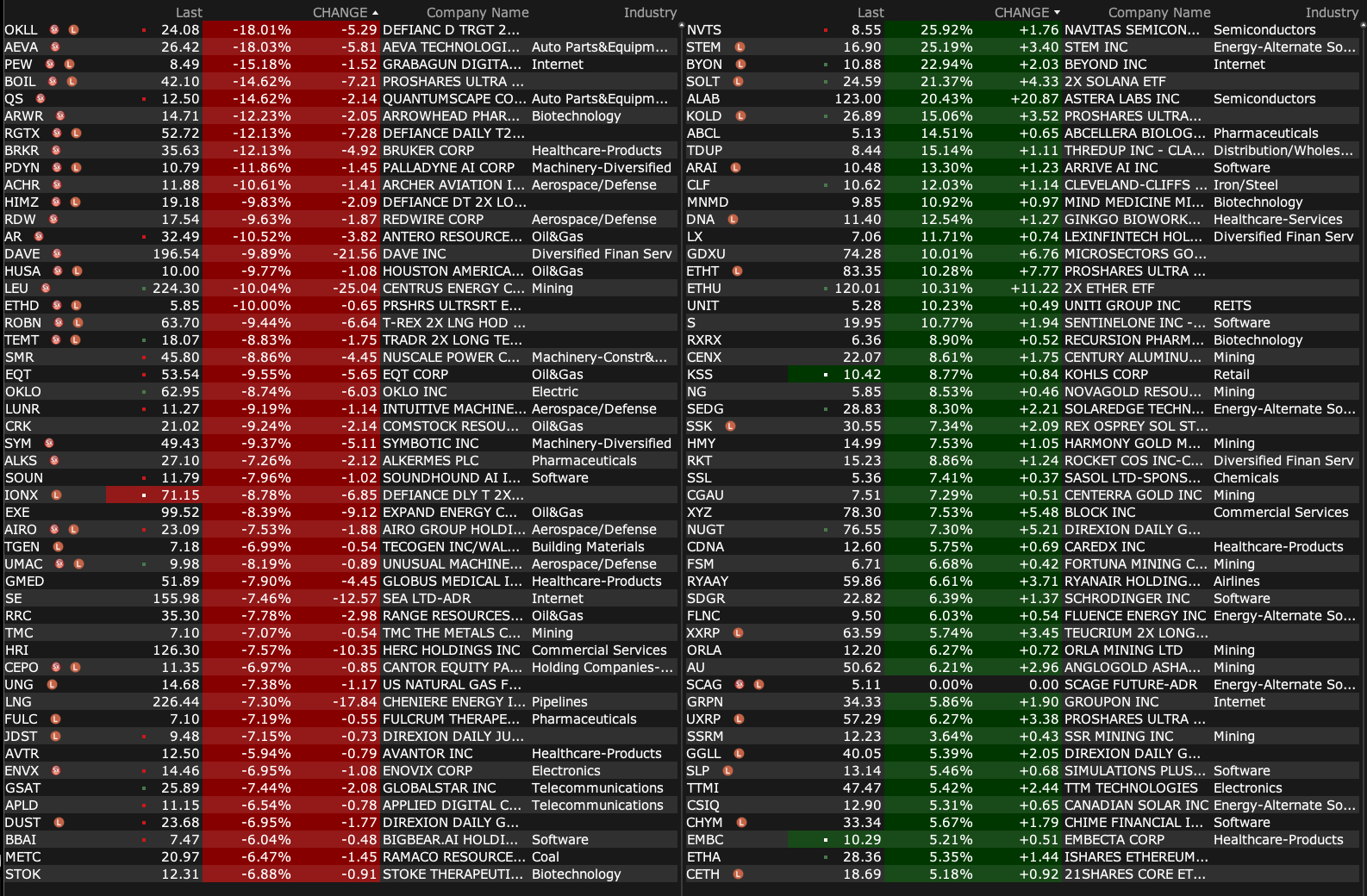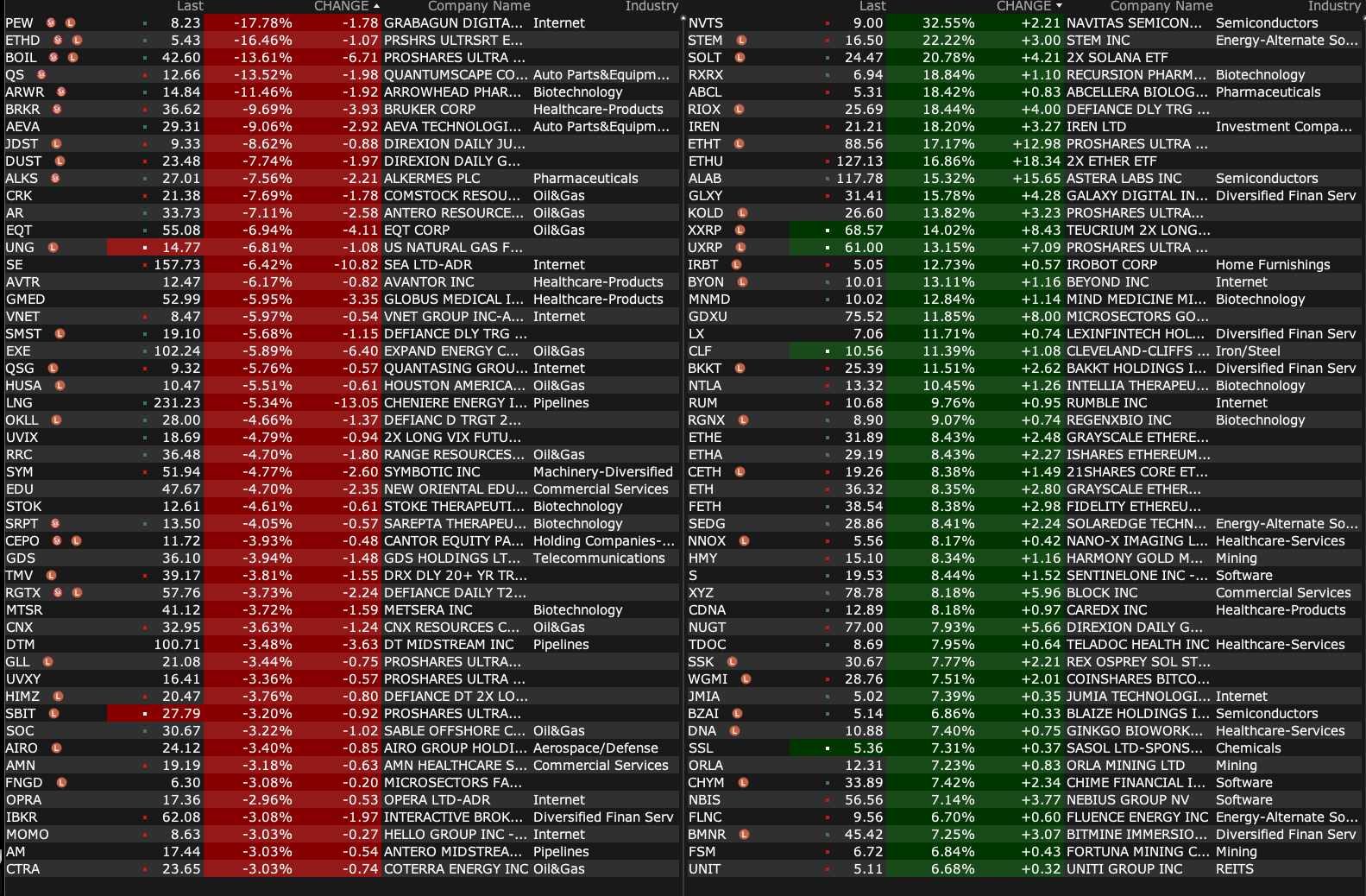 Robinhood HOOD and GE Vernova GEV are the biggest price losers.