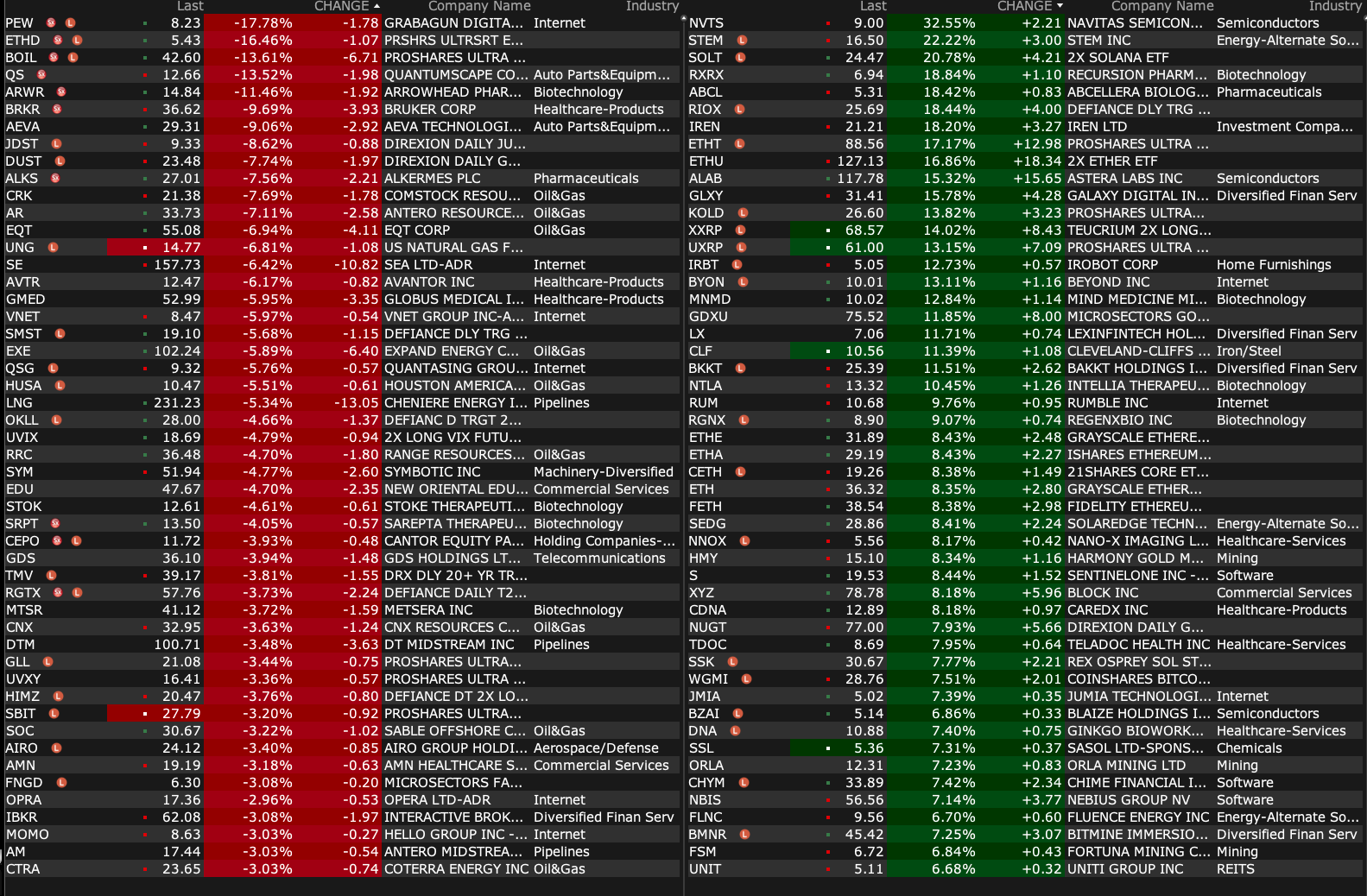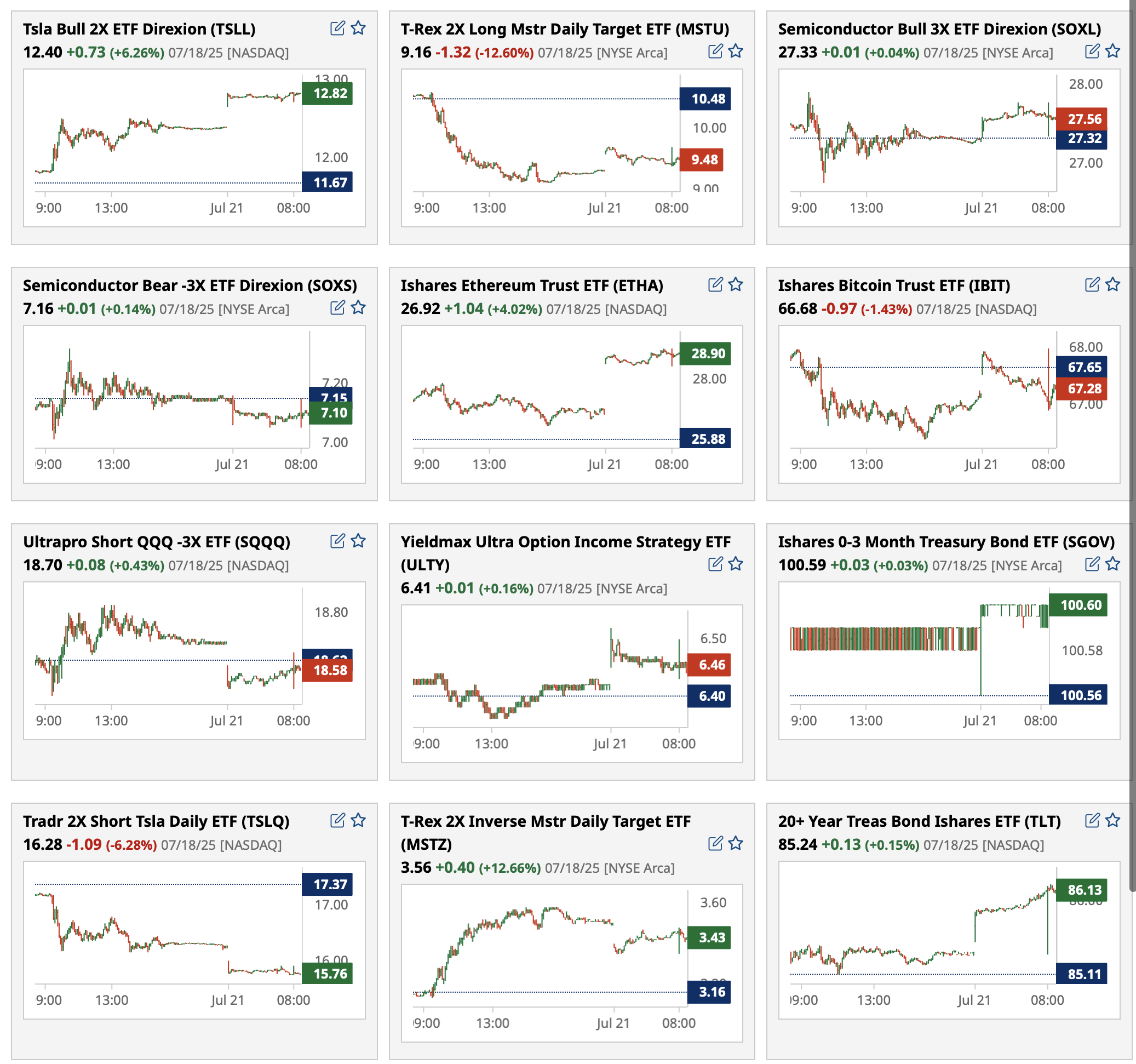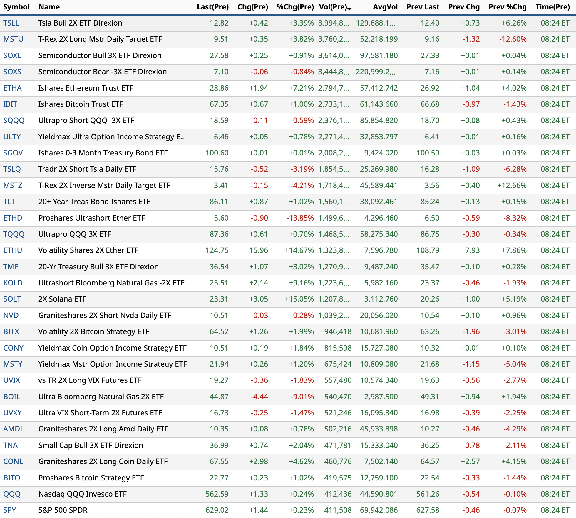 Note that SPY and QQQ take a backseat to more active premarket ETFs (bottom of the ranking list by volume):