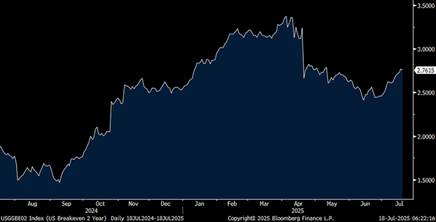 Q2 Earnings was off to a strong start, but stocks reactions were mixed. For large-cap banks, FactSet data (here) shows that Financials has the largest positive surprise in earnings, averaging +11.5% in the first week. XLF finished the week with a +73bp gain, with a -1.7% selloff on the first day of banks earnings (July 15). Positioning Intelligence tells us that they observed “profit taking in large caps post positive earnings prints, while regionals were brought”. Lastly, the Trump vs. Powell debate led to some intraday volatility in rates. We saw yield curve twist steeper and all three major indices decline before Trump denied that he will fire Powell later in the afternoon.
