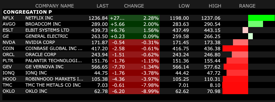 Netflix NFLX (+$22) is the largest price gainer, followed by Coinbase COIN (+$2.60).
