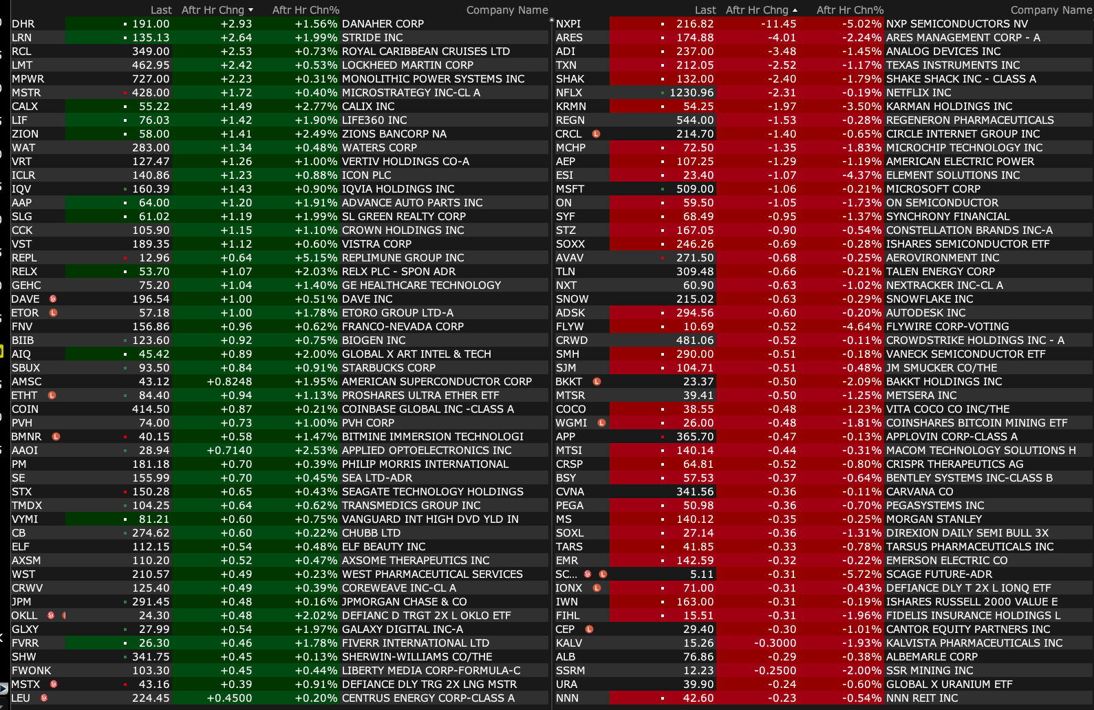 Monday's After-Hours Movers