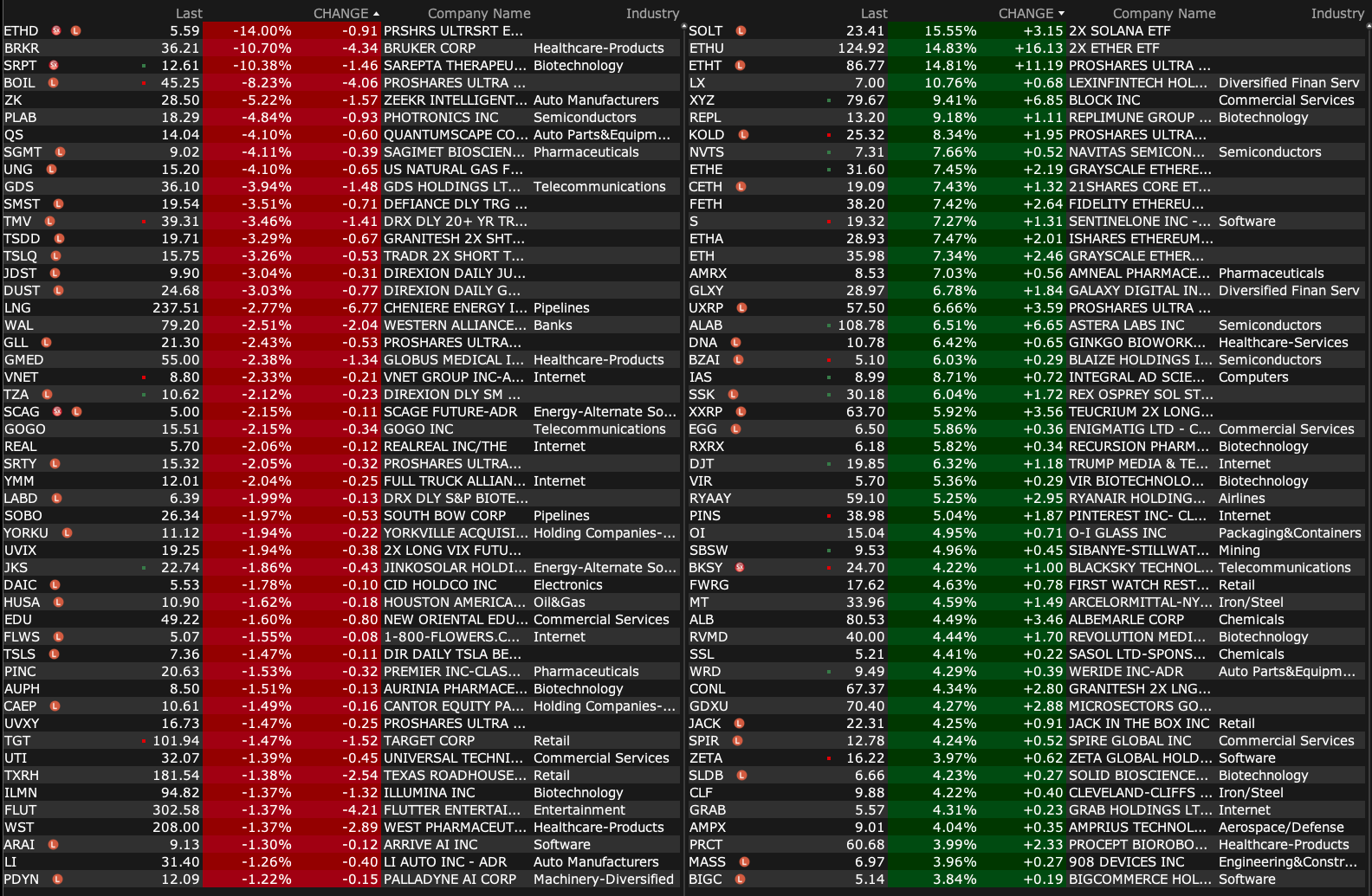 -SRPT -7.9% (affirms FDA revoked the platform technology designation for AAVrh74 platform technology previously granted on June 2, 2025)