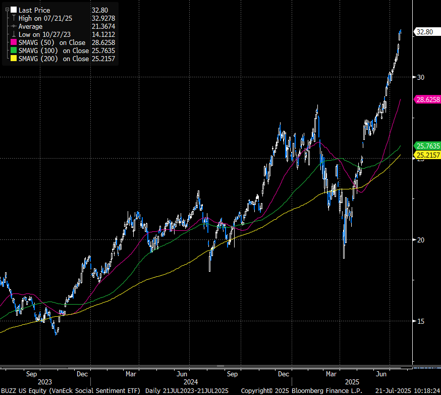 BUZZ's largest holdings are AST Spacemobile ASTS, Rocket lab RKT, Robinhood HOOD, AMD AMD, Coinbase COIN, Palantir PLTR, Tesla TSLA and Nvidia NVDA.