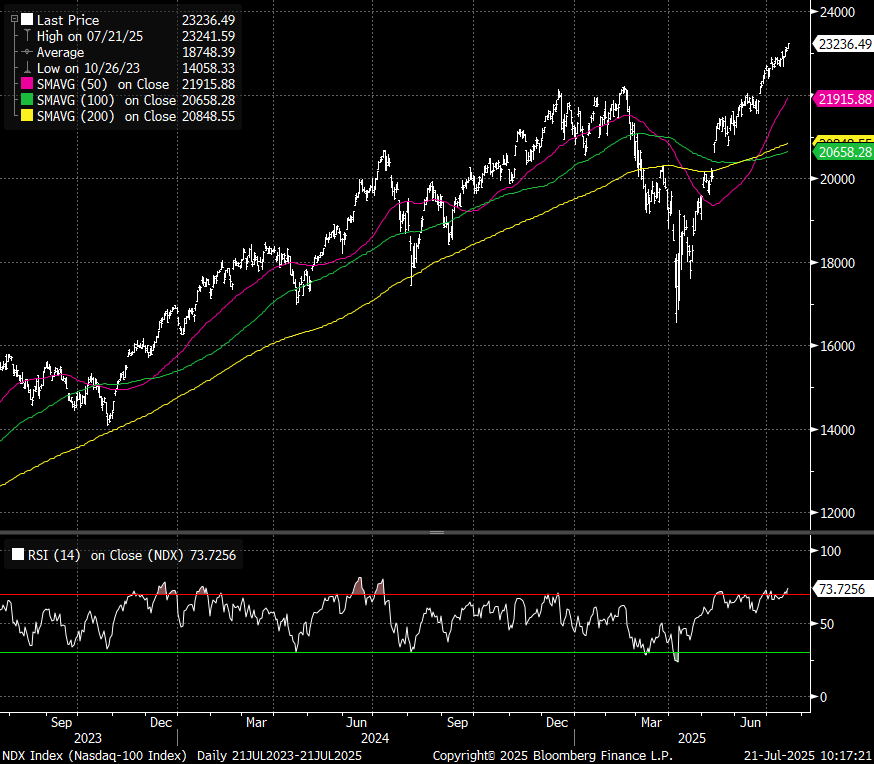 The NDX 14-day relative strength index is now at the highest level since Summer, 2024:
