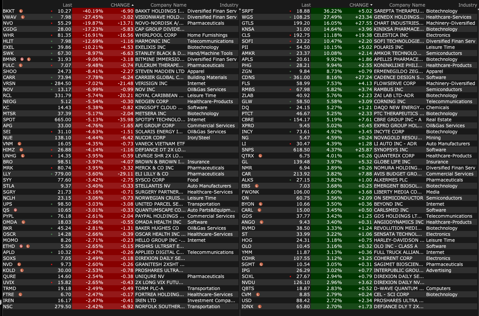 -DRRX +264% (BHC to acquire DRRX for upfront consideration of ~$63M at closing, with the potential for two additional net sales milestone payments of up to $350M)