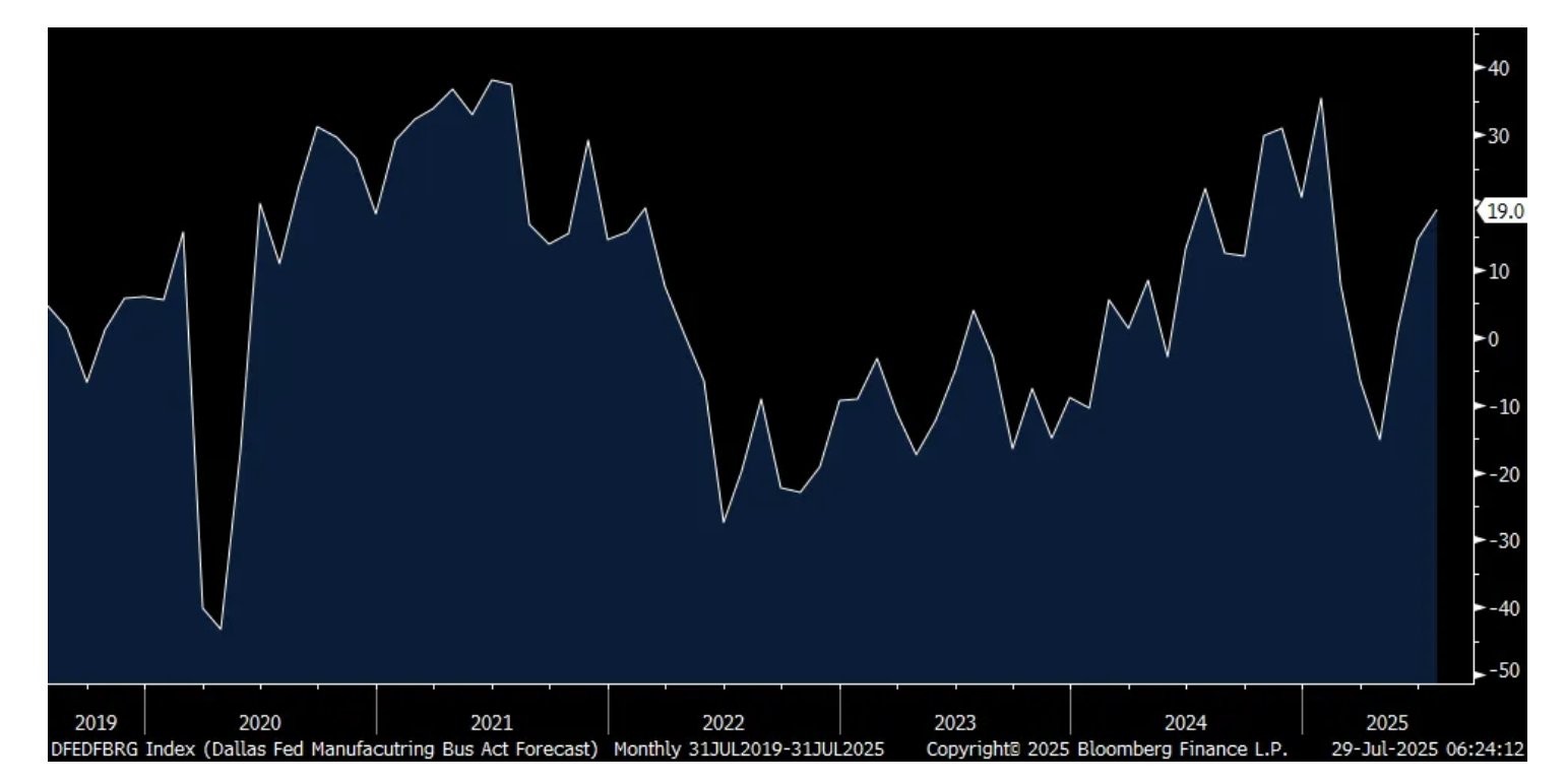 Anecdotally, the Dallas index is always a go-to for the company comments and here is what was said of note which continues to reflect the challenges of manufacturers, particularly with tariffs which just throws mud in the gears of business, but with a few pockets of hope. One quote was this, "Tariffs. Tariffs. Tariffs. Did I mention Tariffs?" :
