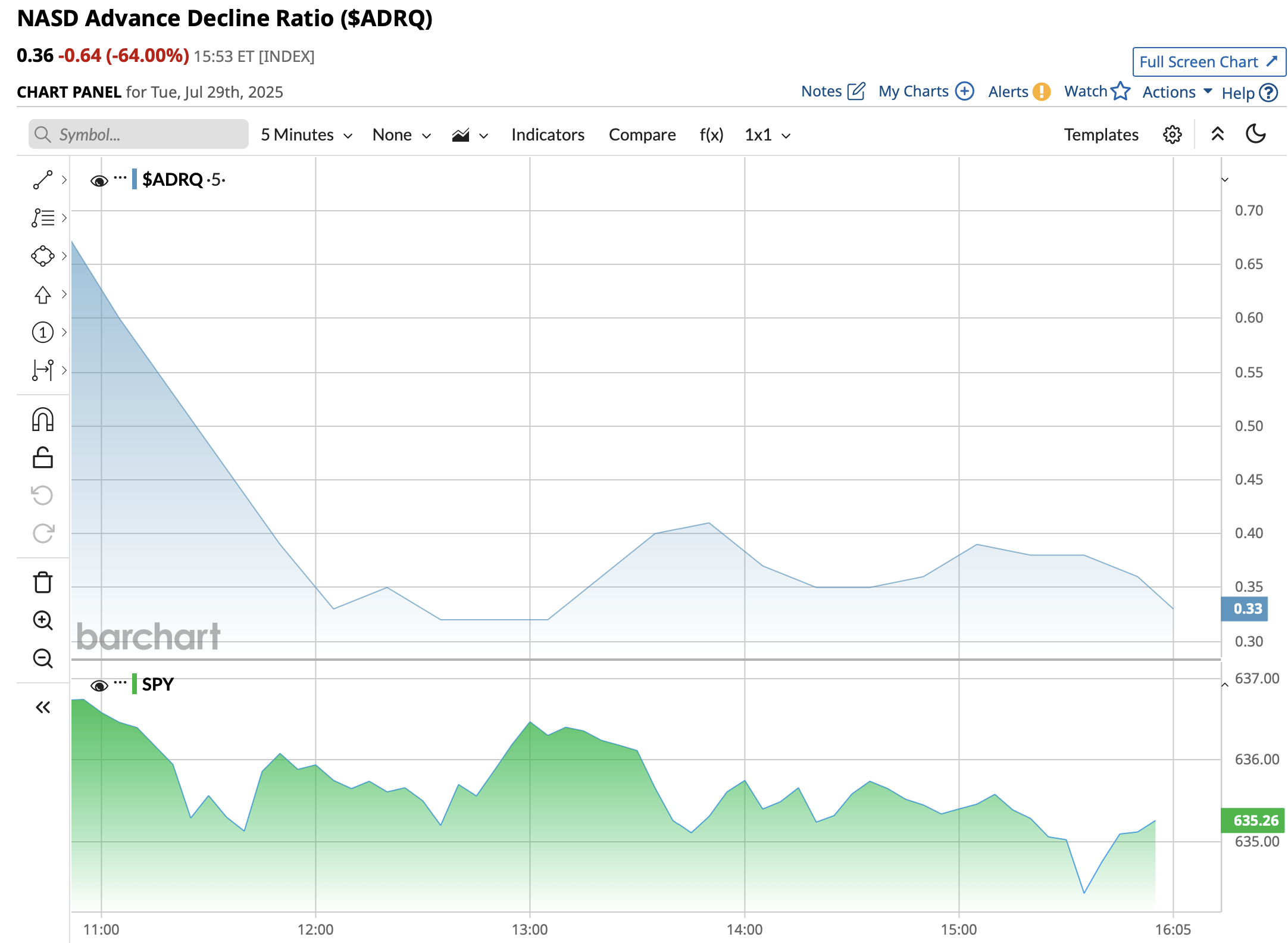 - NASDAQ volume 6% above its one-month average;