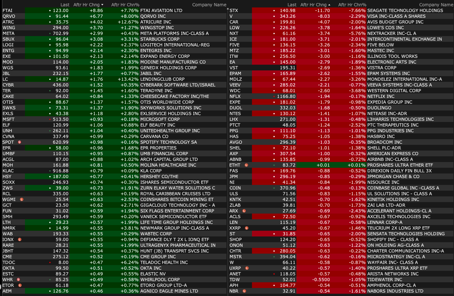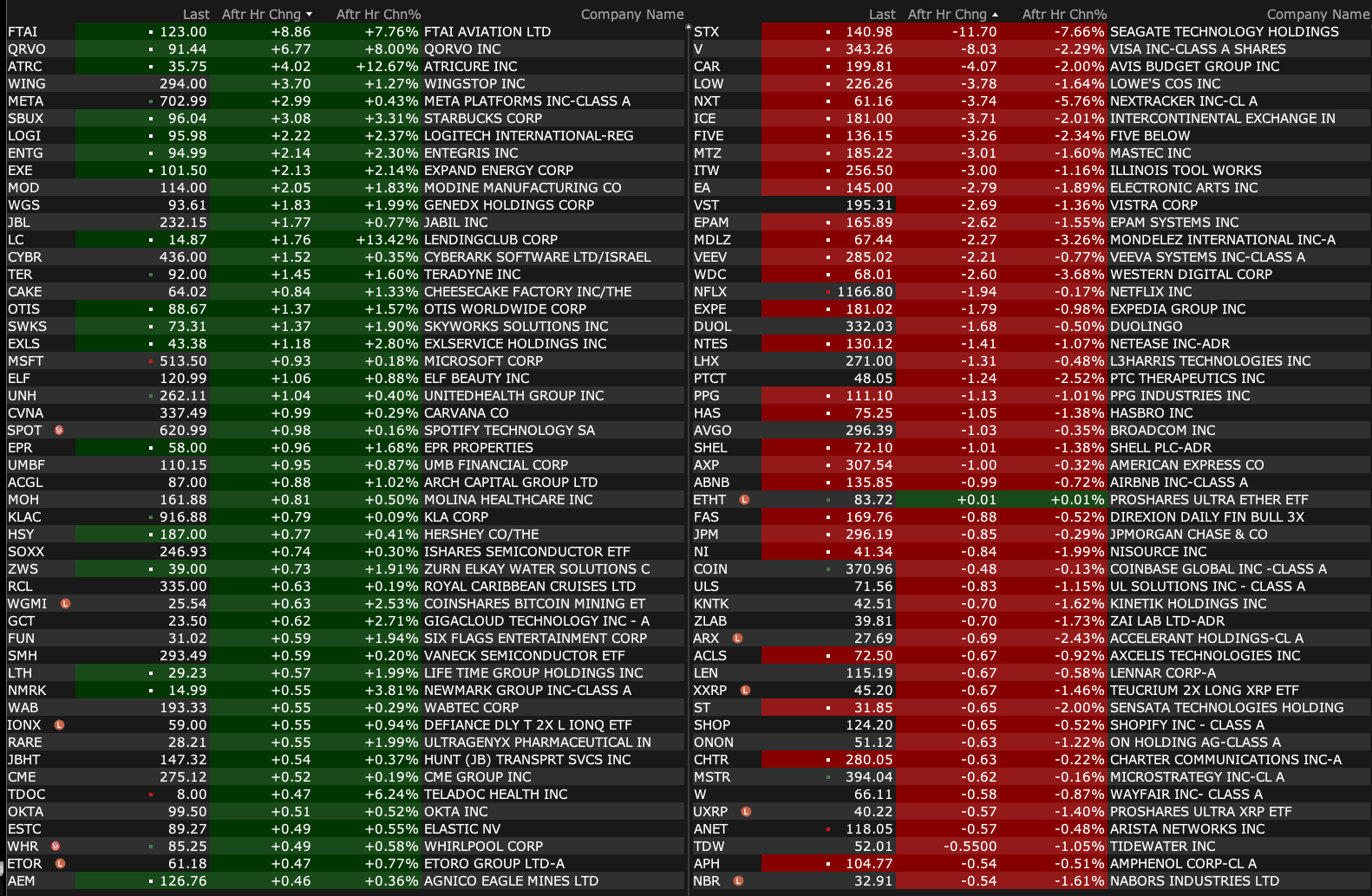 Tuesday's After-Hours Movers