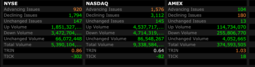 - Nasdaq volume 9% below its one-month average
