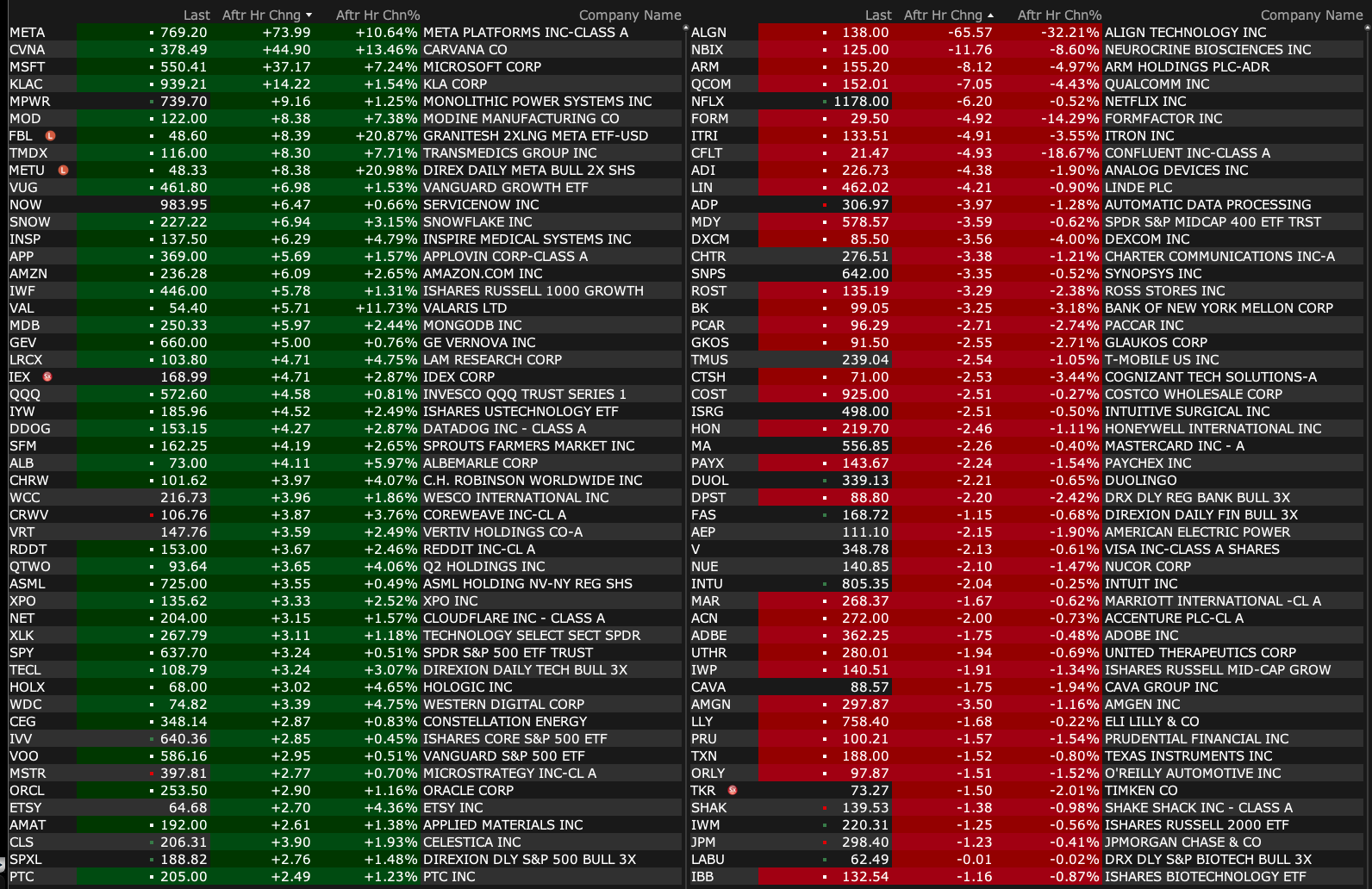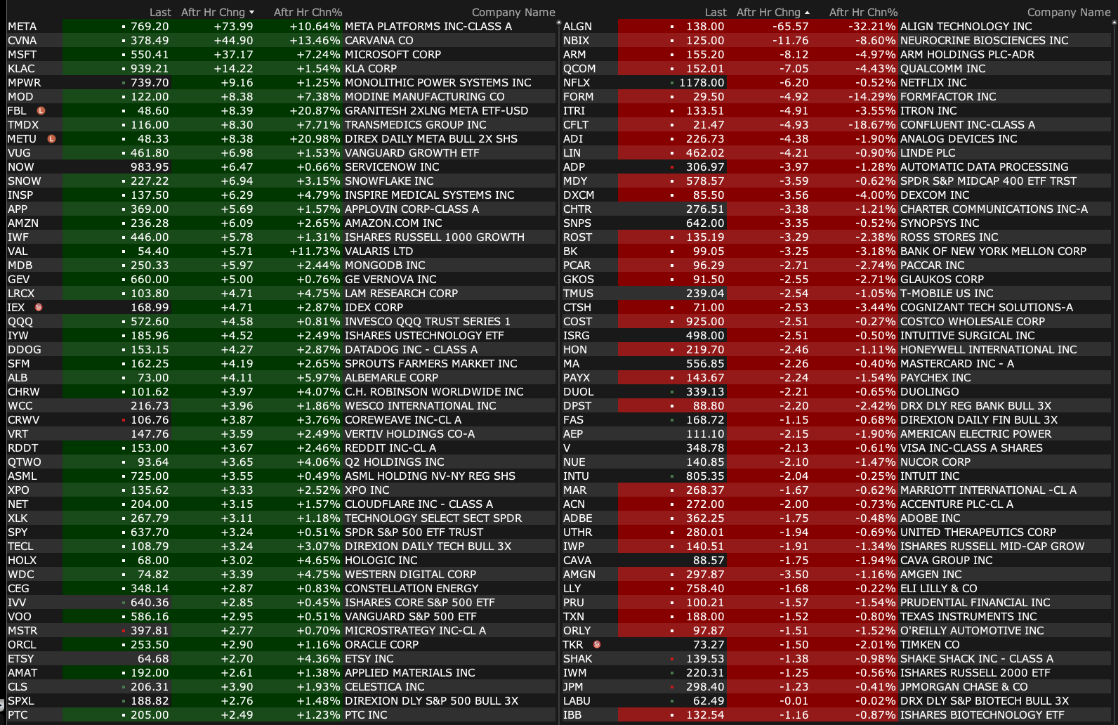 Wednesday's After-Hours Movers