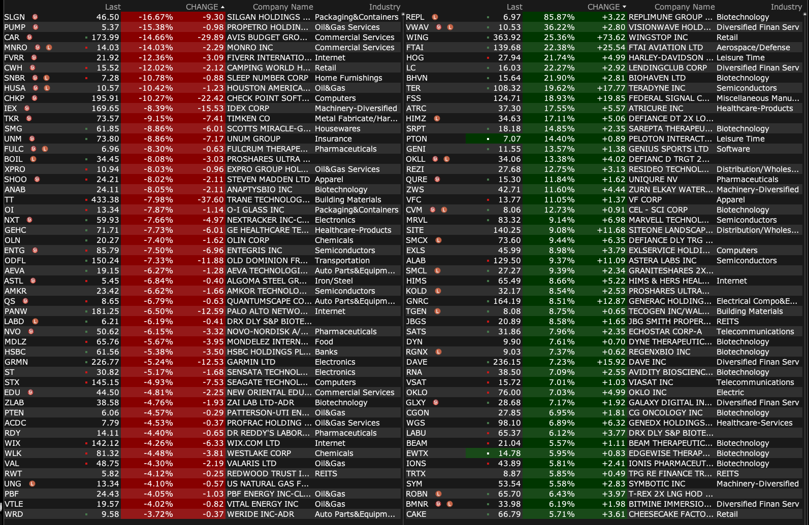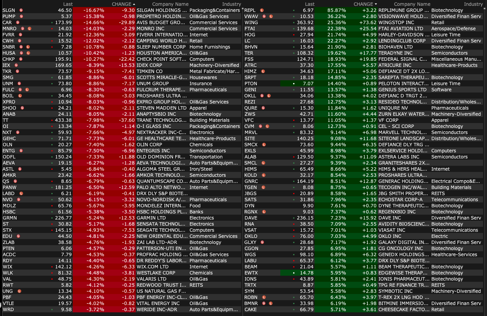 -ENTG -5.7% (earnings, guidance)