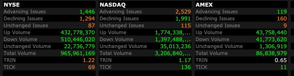 - NASDAQ volume 5% below its one-month average;
