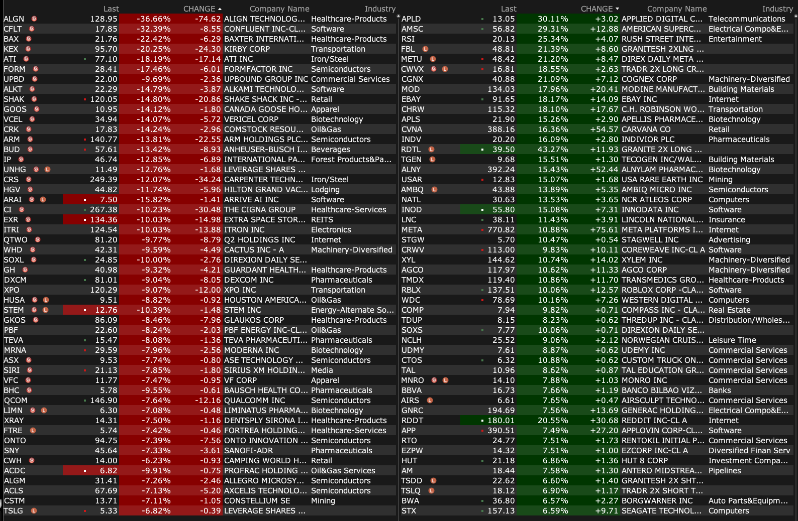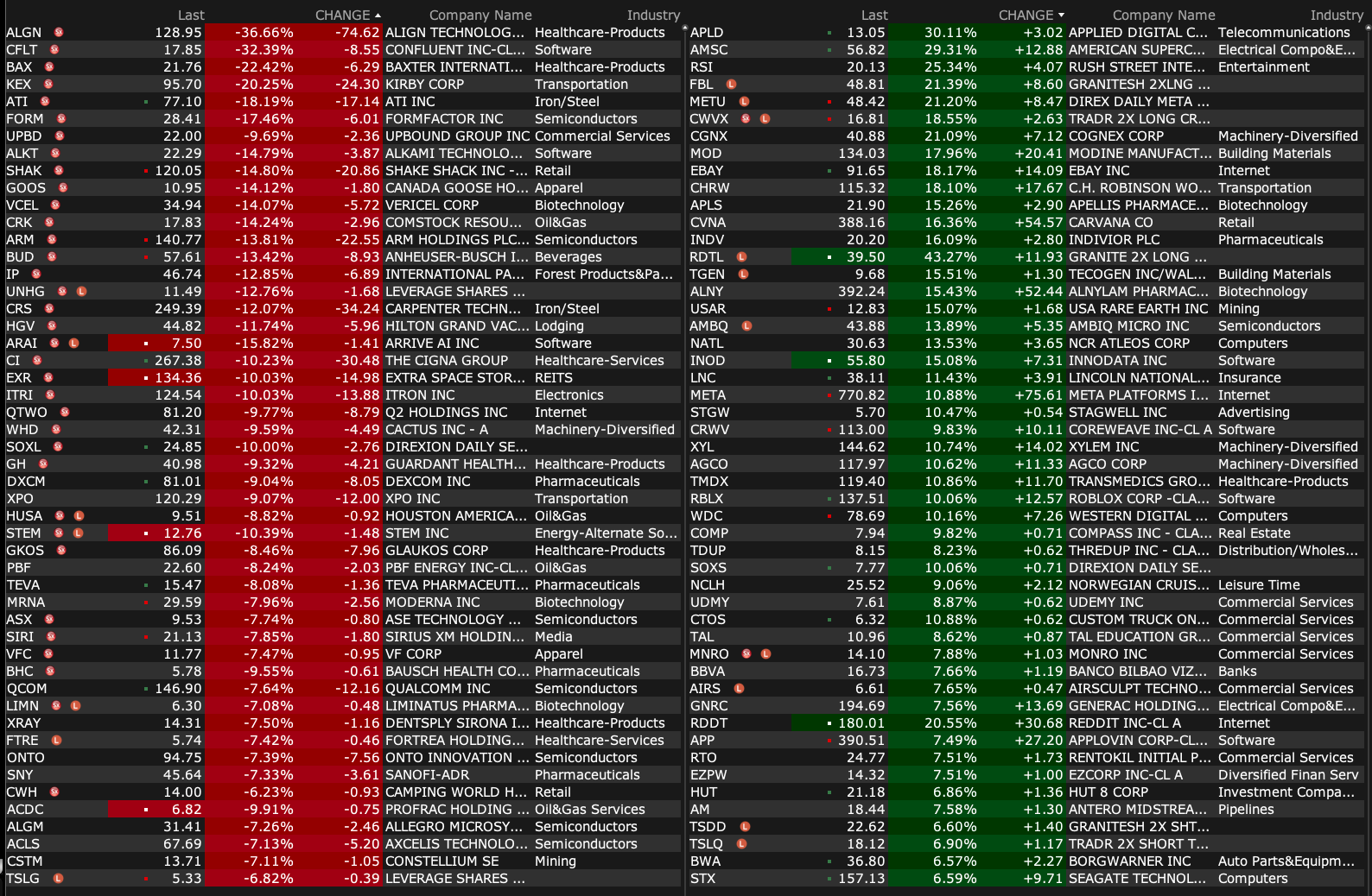 From Illinois Tool Works, it fell 2% yesterday: