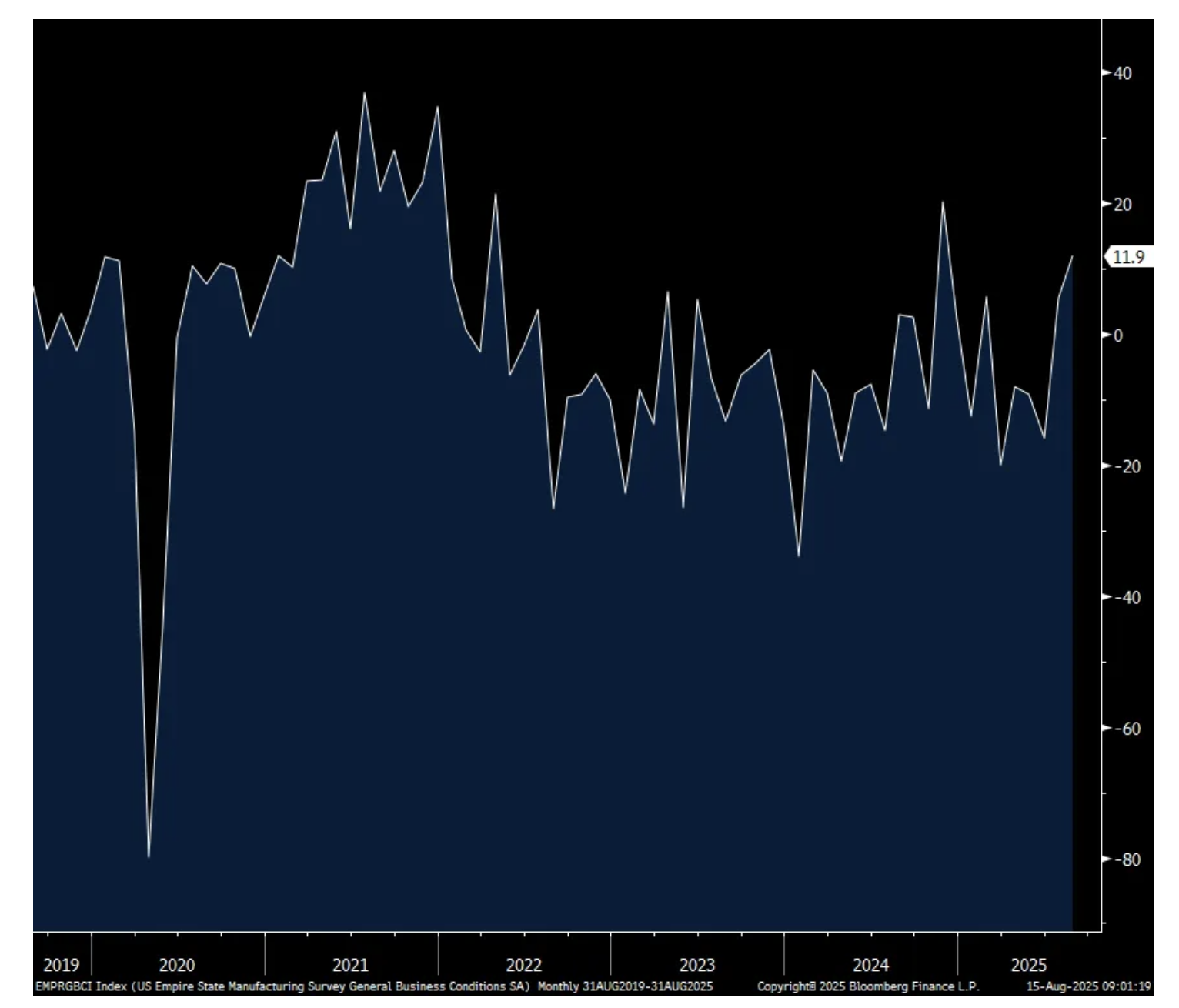 4) The August NY manufacturing index was above zero for a 2nd month at 11.9 vs the estimate of zero.
