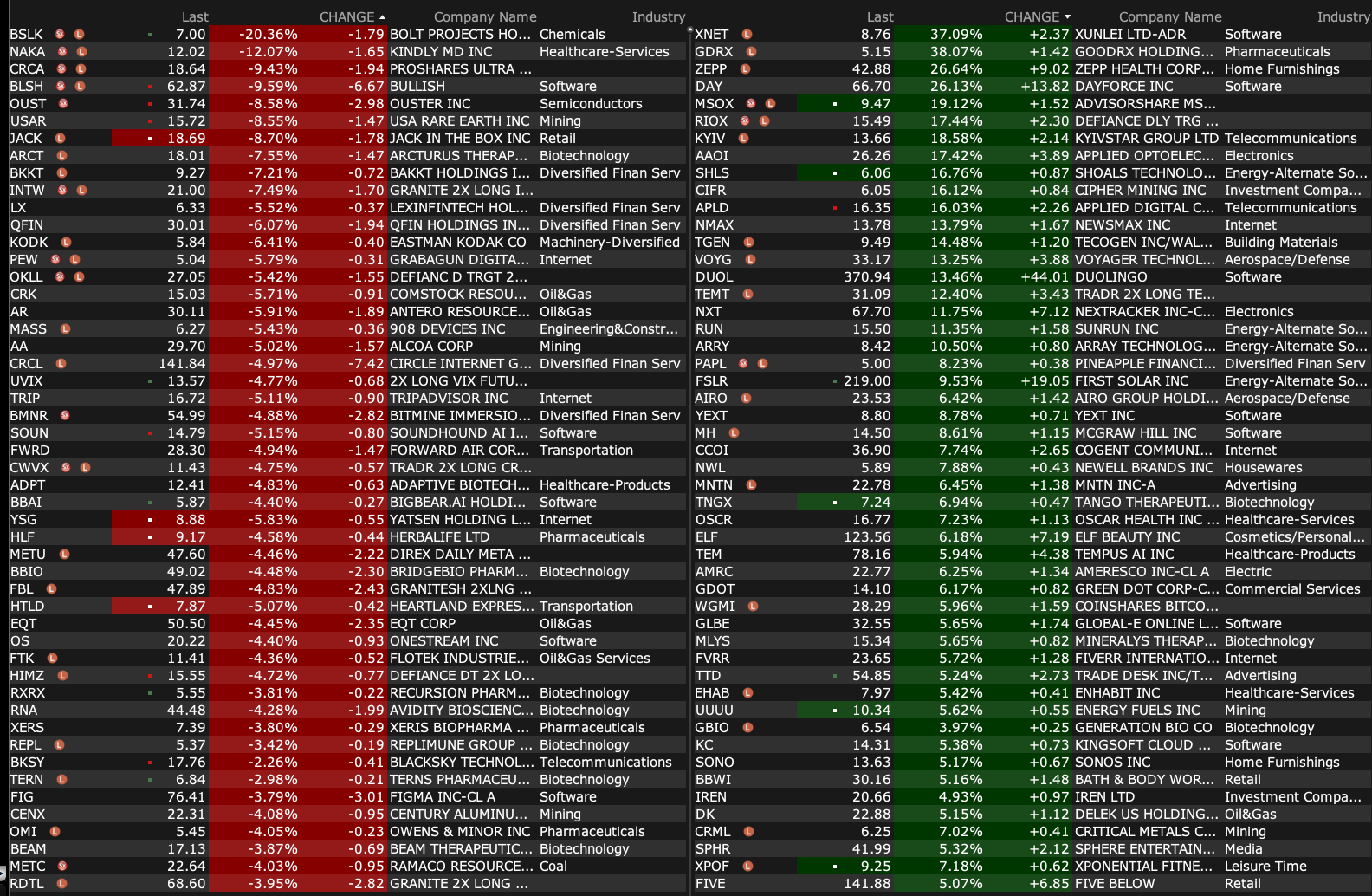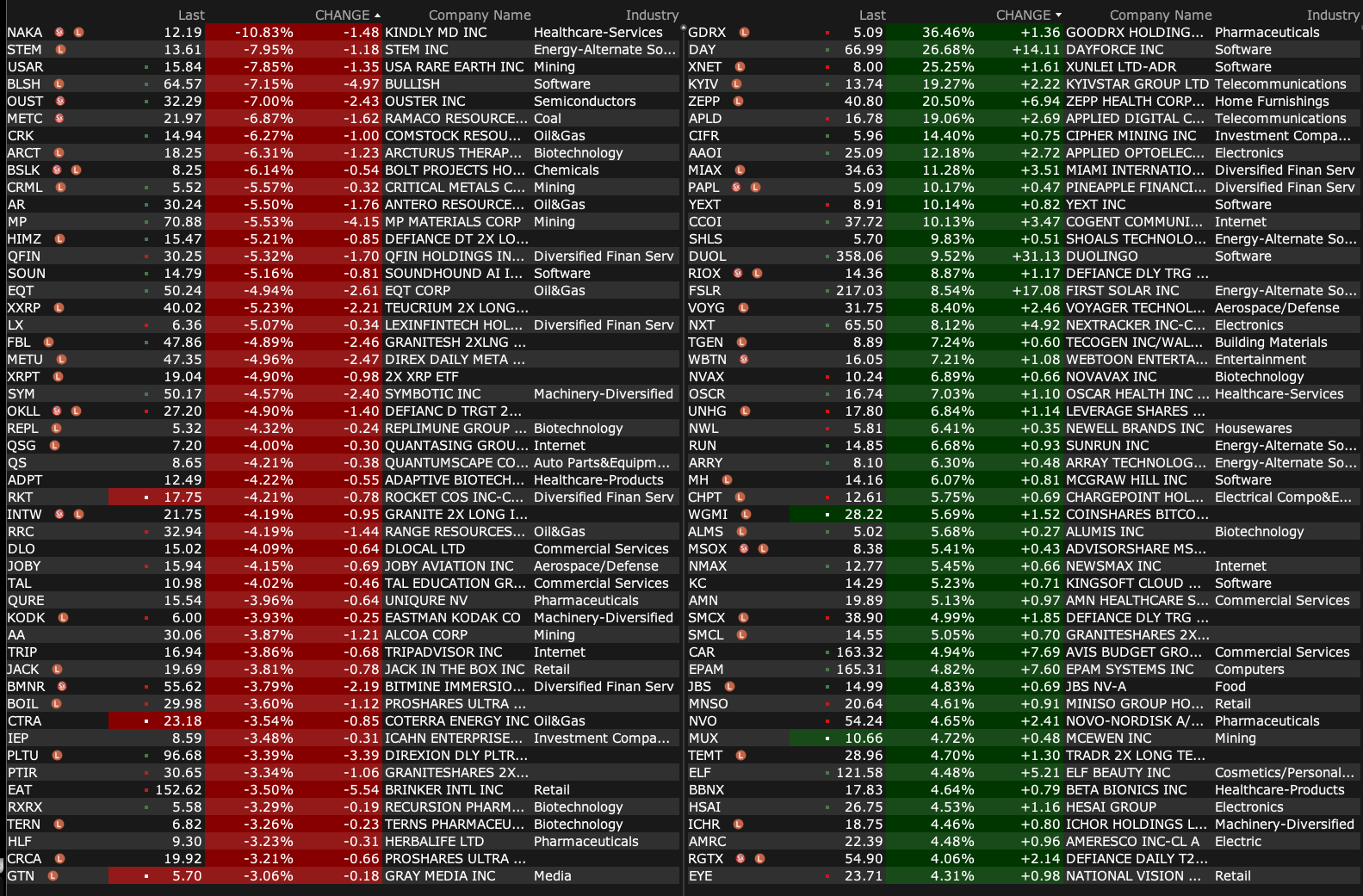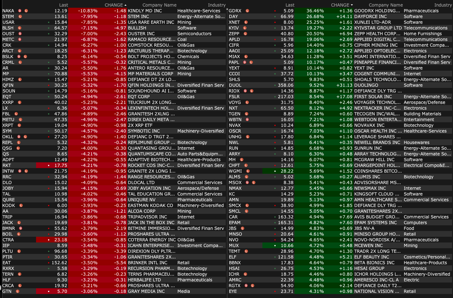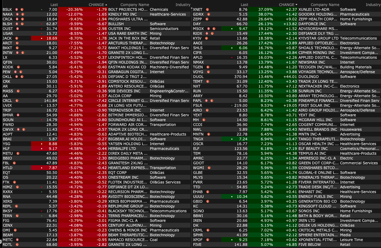 -BDRX +2.3% (first patients enrolled into Pivotal Phase 3 Serenta Trial in Familial Adenomatous Polyposis)