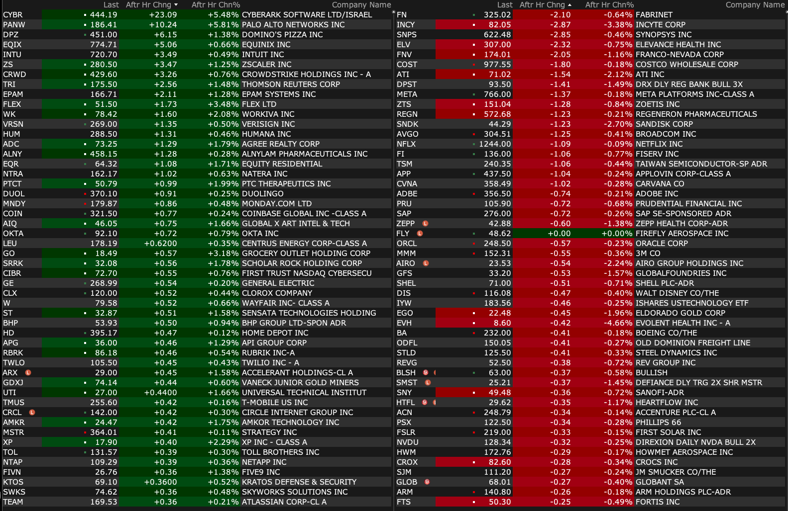 Monday's After-Hours Movers