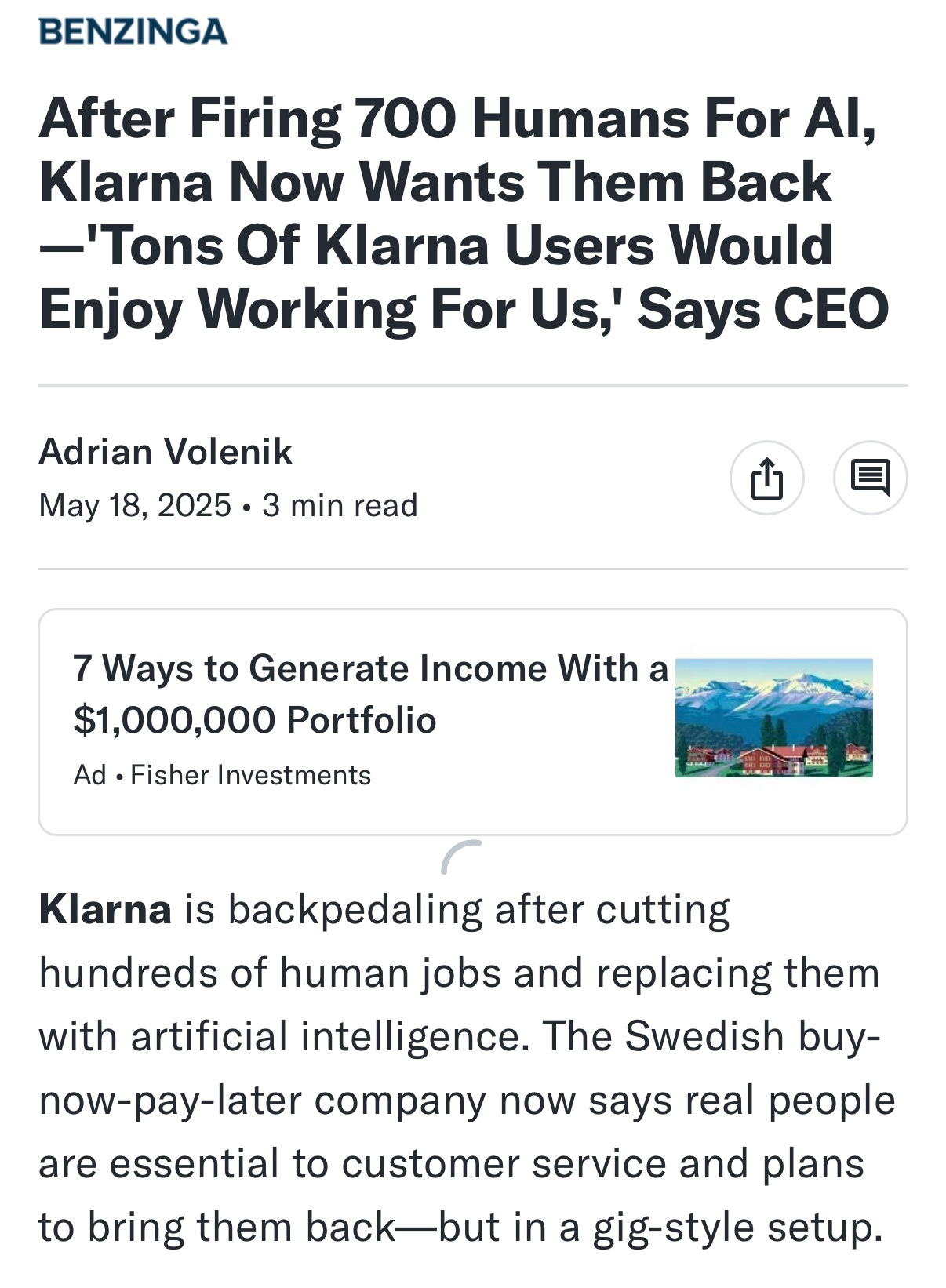 Interesting article below - AI, layoffs, productivity and The Klarna Effect