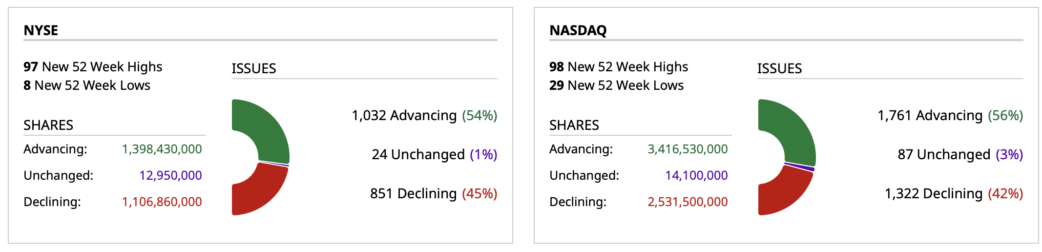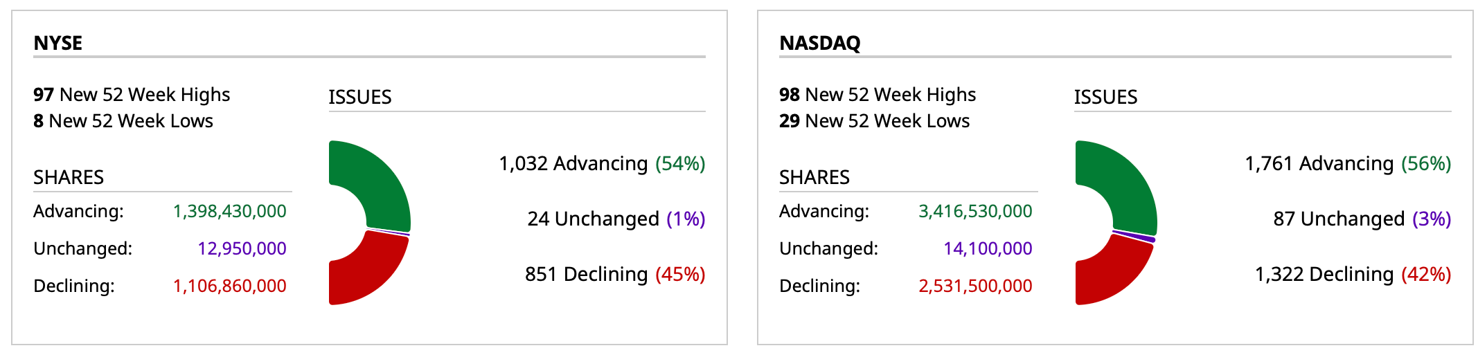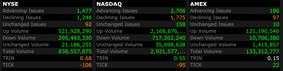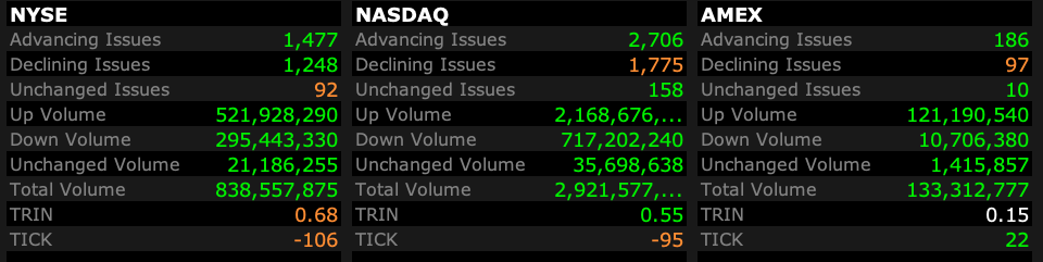 - NASDAQ volume 2% below its one-month average