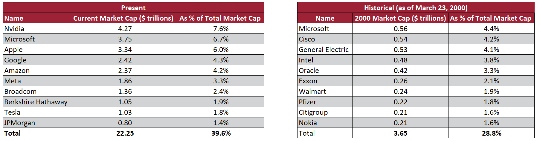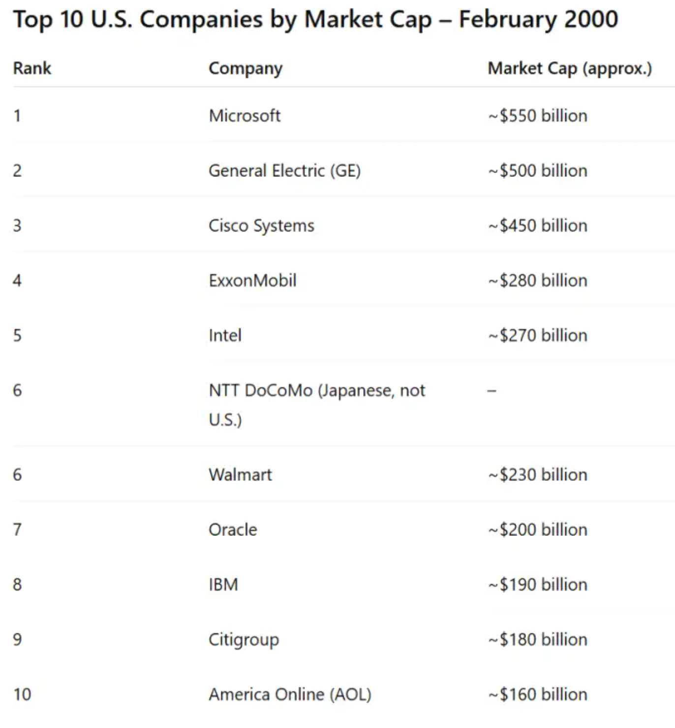 Let me remind everyone that the 10 biggest companies just before the 2000 crash were ALL "real" companies — so even in that regard there's nothing all that different from today: