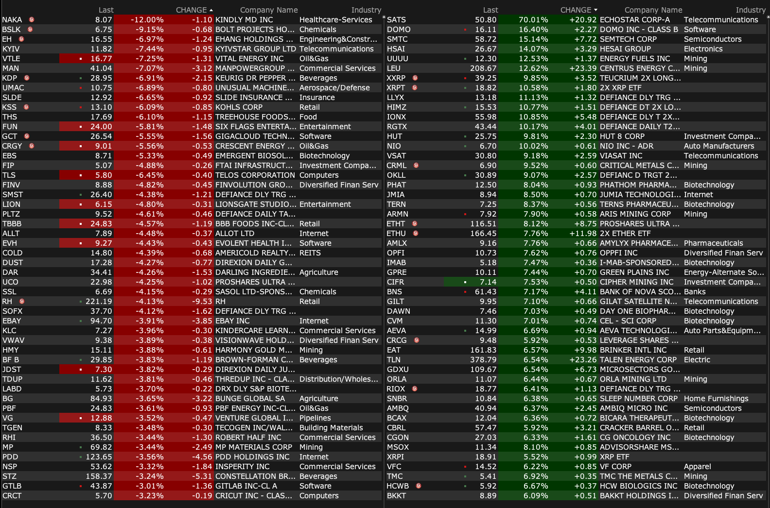 -TLRY +12% (recent talk of cannabis reclassification, Jefferies bullish commentary)