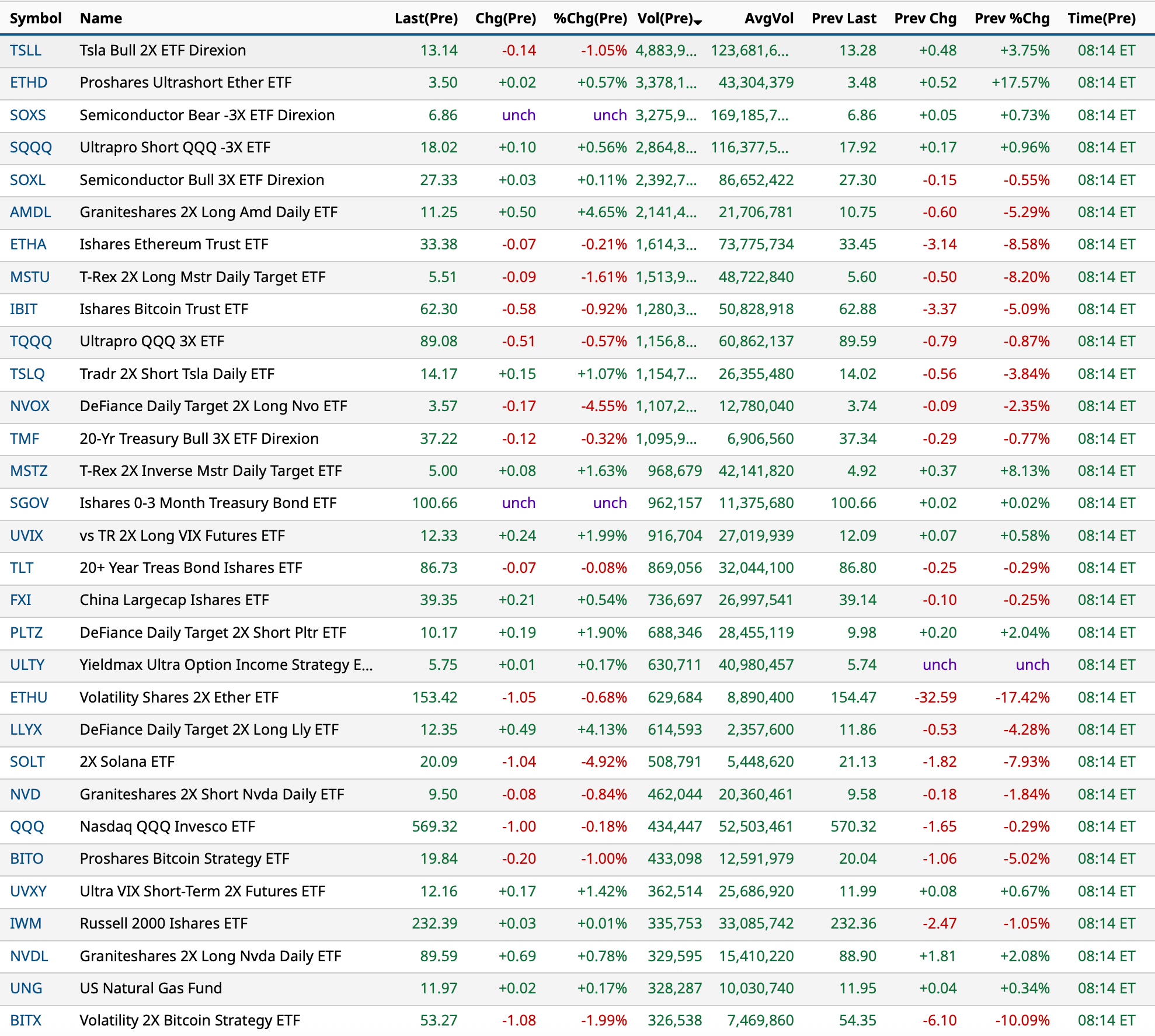 - VIX index: up 0.14% to 14.81