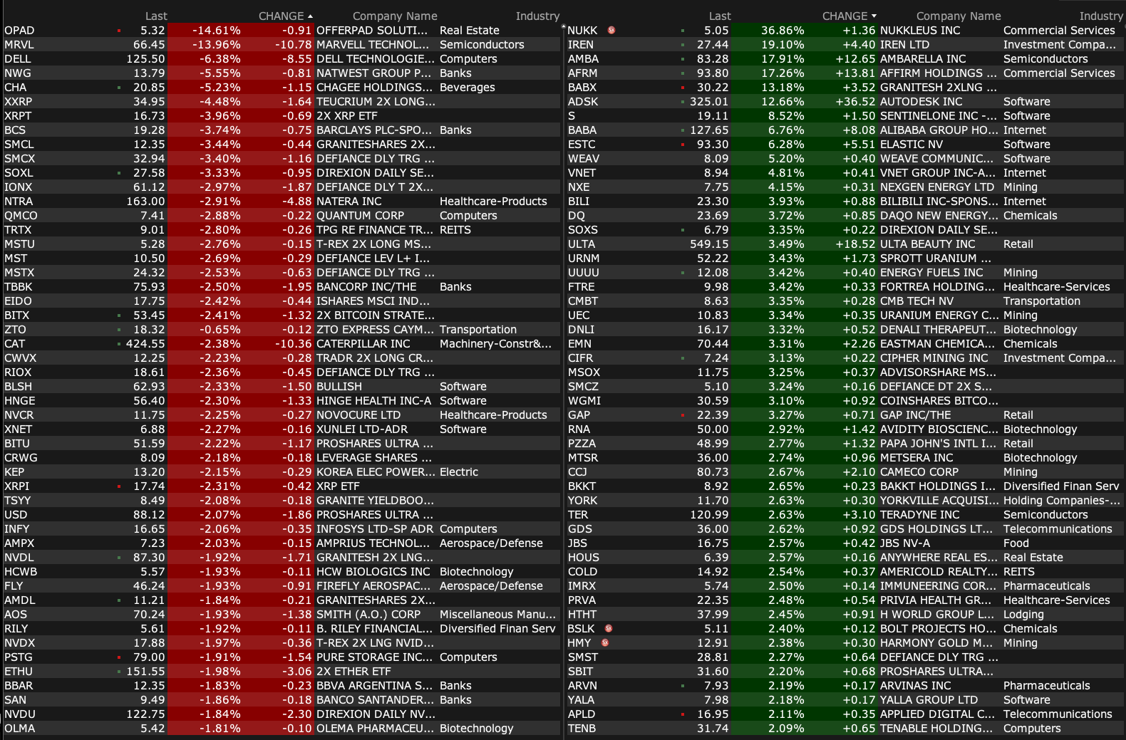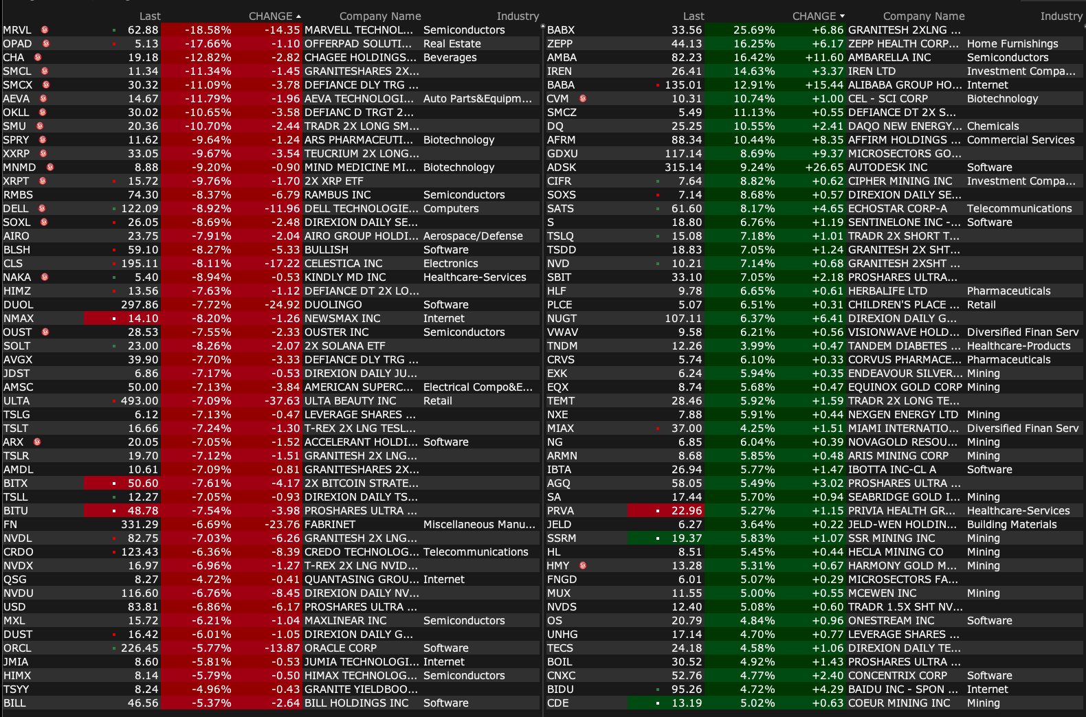 -MRVL -14% (earnings, guidance)
