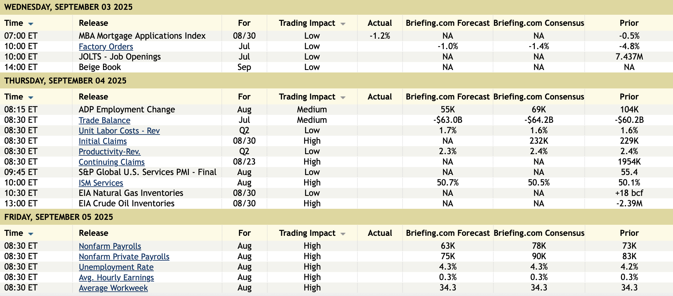 Overseas, the China's August RatingDog (no longer Caixin) private sector focused services PMI rose to 53 from 52.6 and that is the best level since May 2024. RatingDog said "the index measuring overall new business saw a significant jump to its highest point since May of last year, while new export business expanded at the quickest pace since February. This was largely driven by more stable domestic demand and a recovery in foreign demand. At the same time, service sector businesses remained optimistic about the future, with overall confidence the joint-highest since March."
