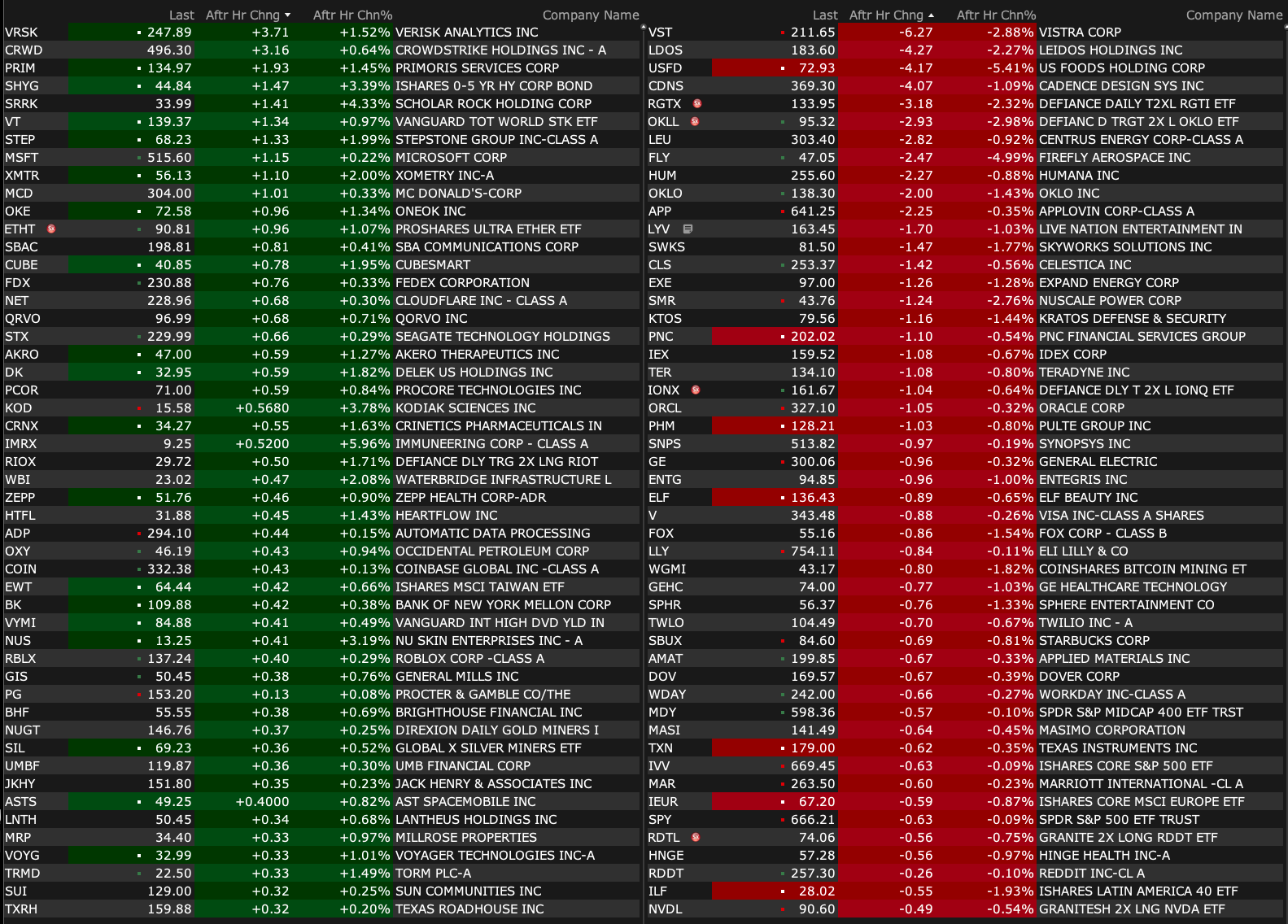 -KVUE -4.3% (weakness in anticipation of Trump Administration linking Tylenol to autism)