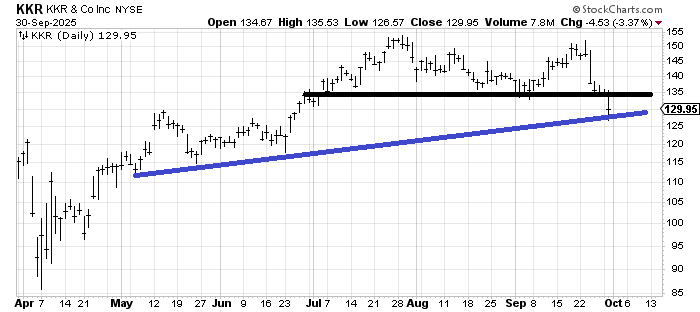 As an example, KKR traded over $152 on September 23, a week or so later its under $129.