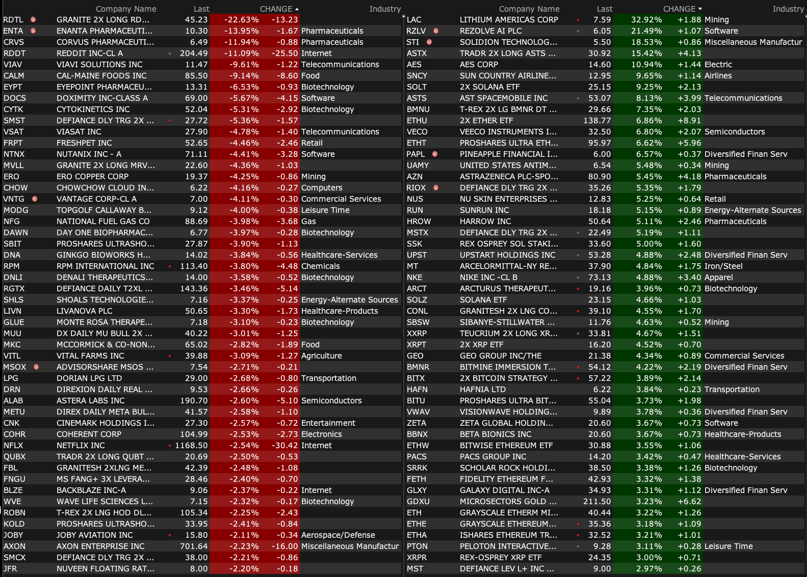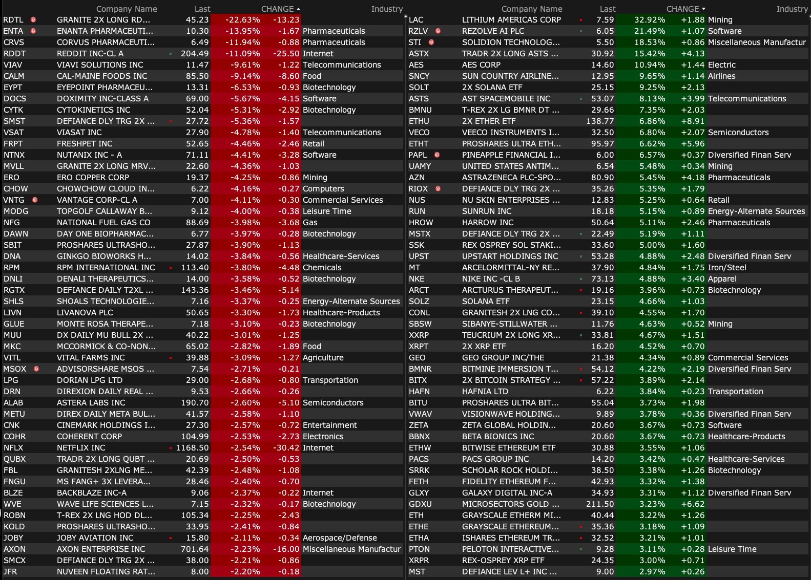 -LAC +37% (US Energy Sec Wright: US to take a 5% stake in Lithium Americas, and 5% stake in Nevada mine project; reaches agreement with GM and U.S. DOE regarding First Draw on DOE Loan)