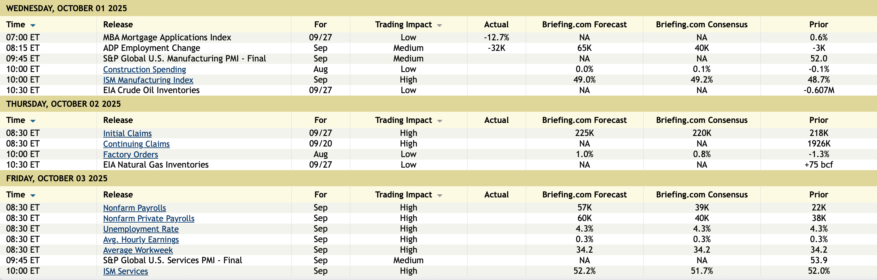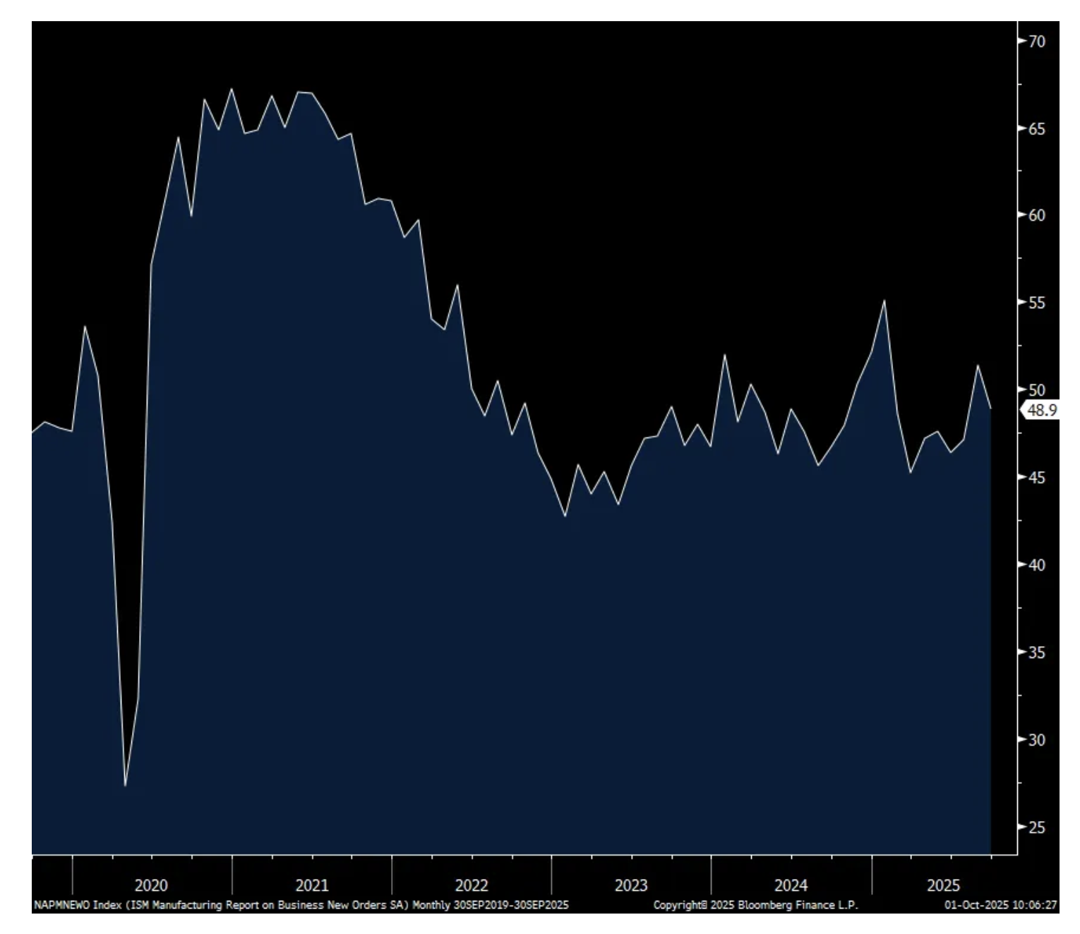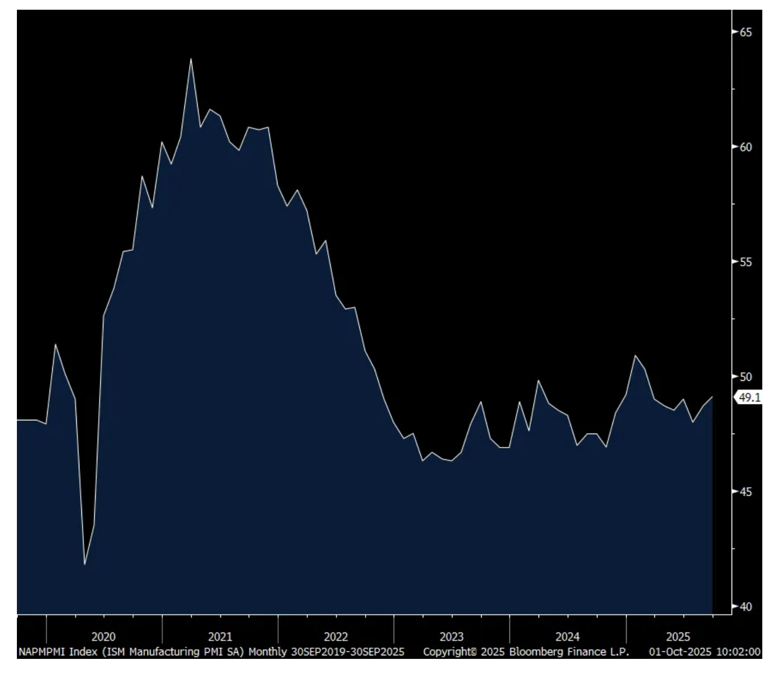The September ISM manufacturing index was 49.1 as expected and up slightly from the 48.7 print for August. After seeing two figures above 50 in January and February, this is the 7th straight month below 50 and this sector really hasn’t seen any growth since the summer of 2022. Tariffs, as read below by companies themselves, are just kicking the ball in our own net.