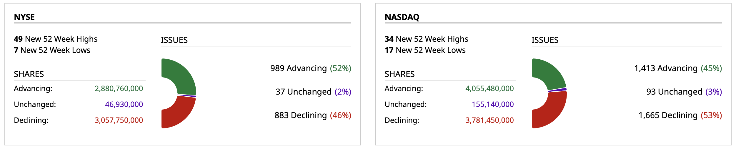 - Nasdaq volume 37% above its one-month average;