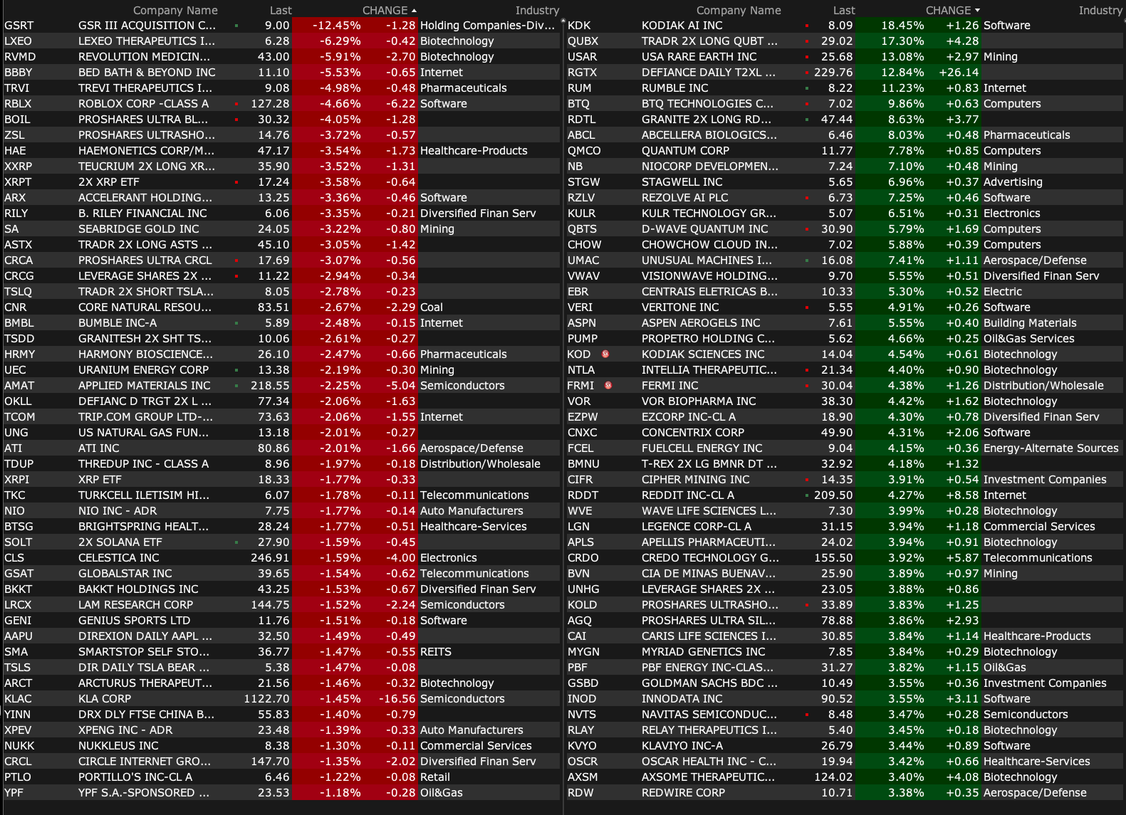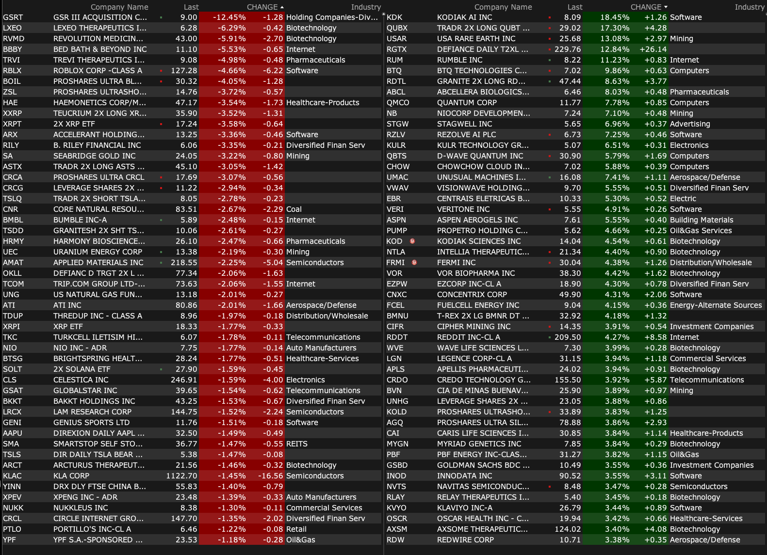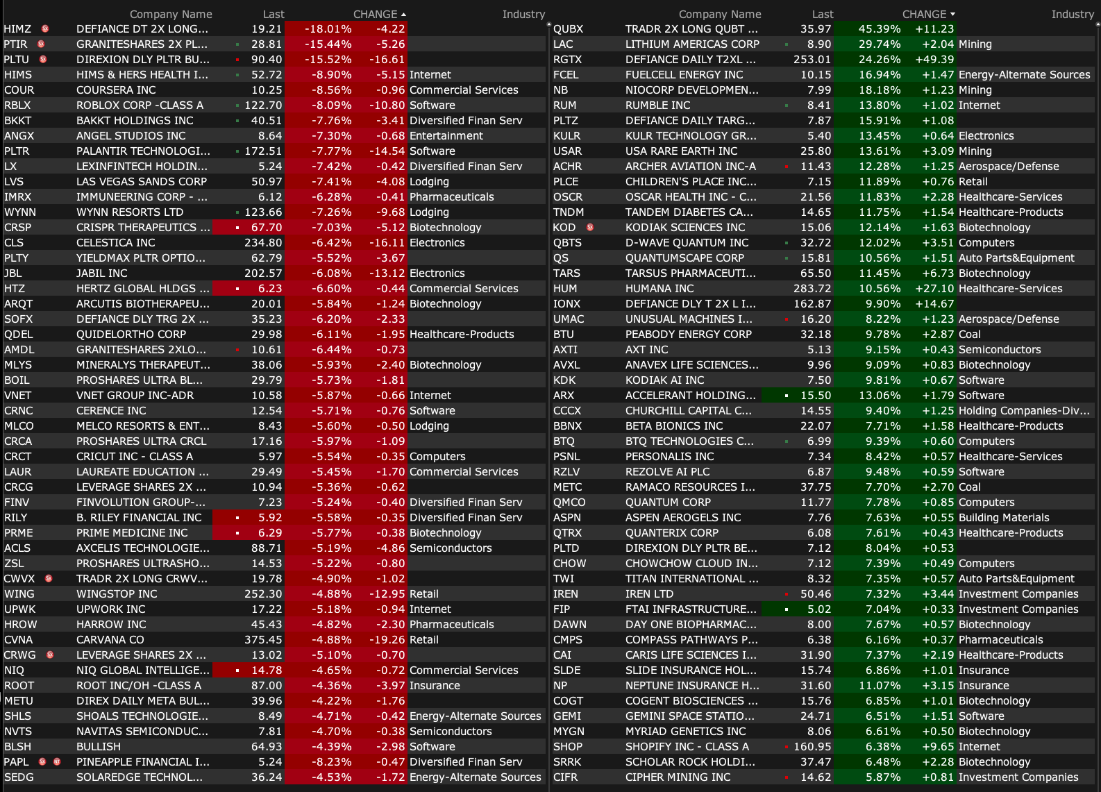 -USAR +13% (reportedly CEO Humpton told CNBC it is “in close communication” with the White House)
