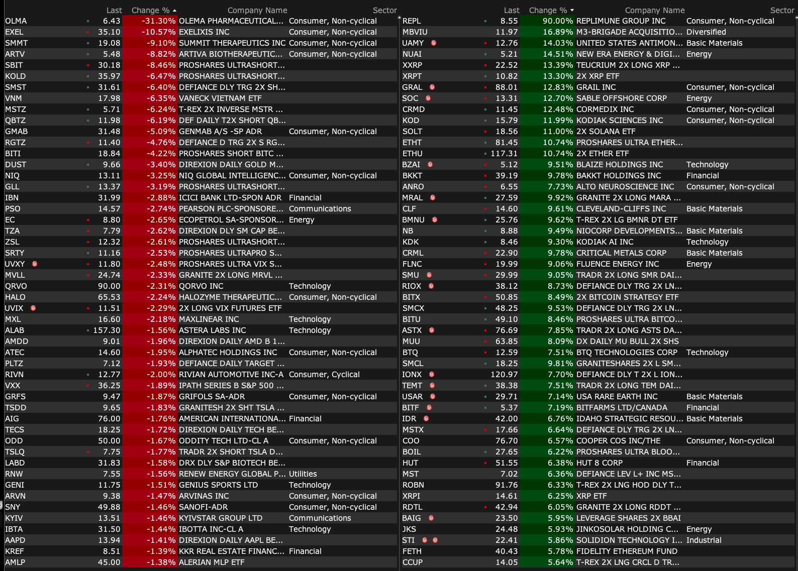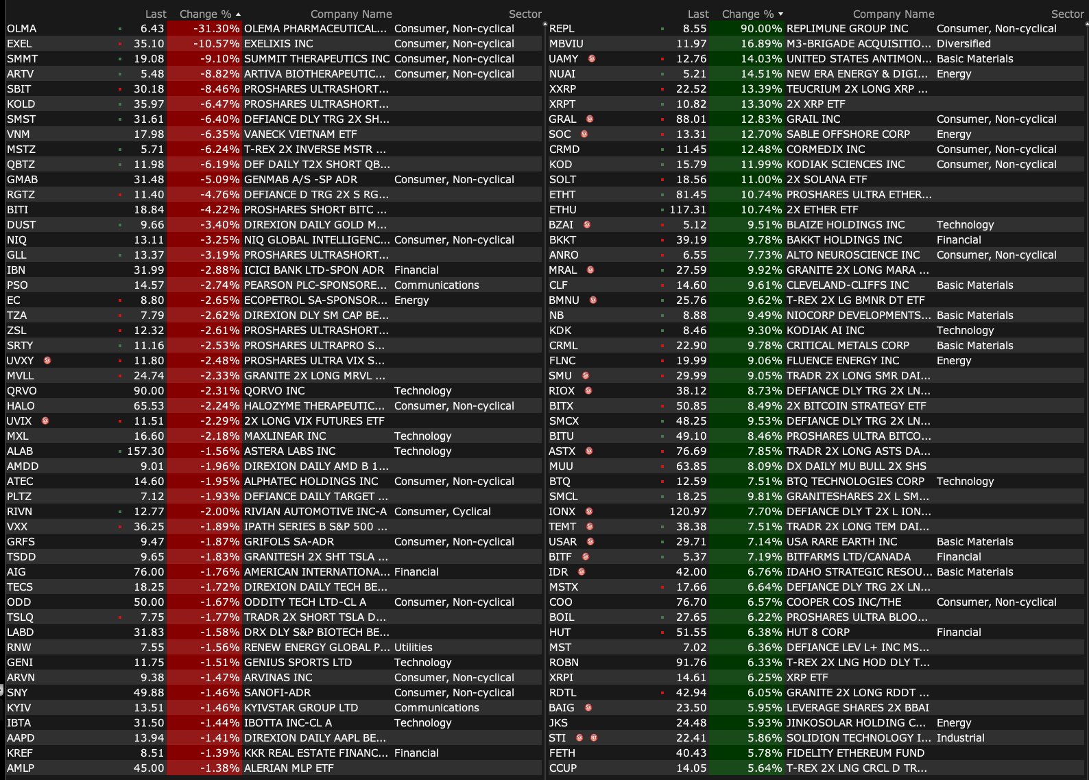 -HOLX +4.8% (reportedly Blackstone and TPG are in late stage talks to acquire Hologic; Price talks said to be over $75/shr, a more than $17B enterprise value)