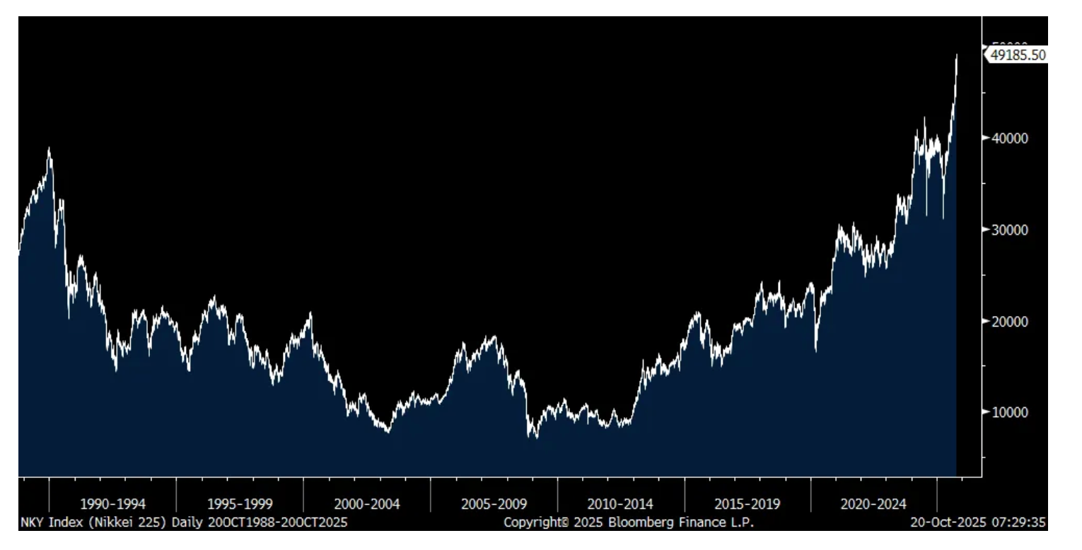 So finally Sanae Takaichi will be the first Japanese female Prime Minister after all after the LDP signed a coalition deal with the Japan Innovation Party. Combine this with another BoJ member who said it’s time to raise rates again and Japanese yields jumped across most of its curve and rose as well throughout Asia. That BoJ member Hajime Takata said “I believe that now is a prime opportunity to raise the policy interest rate. The once deeply entrenched norm has waned in Japan, that the price stability target has been almost achieved.” This follows Naoki Tamura who echoed a similar line of thinking last week.