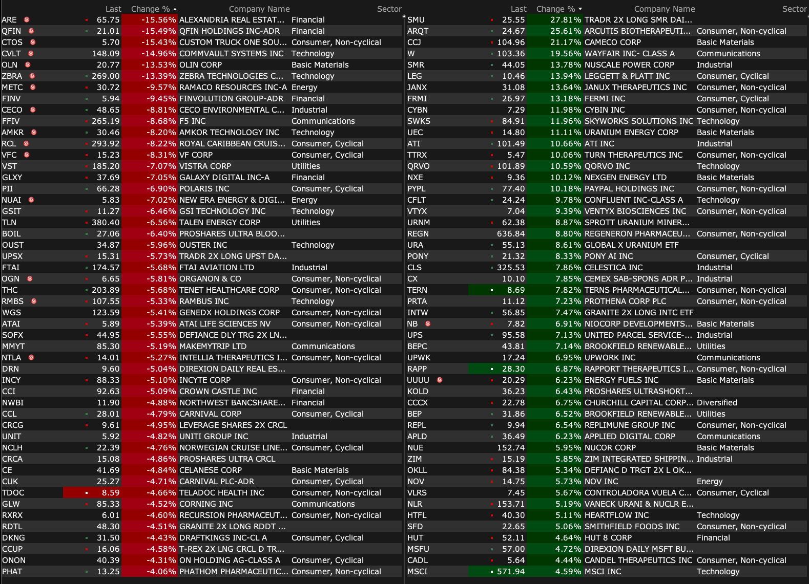 -CCJ +16% (US govt, Westinghouse, Cameco and Brookfield enter a strategic partnership that will see at least $80B of new nuclear reactors constructed in the US)