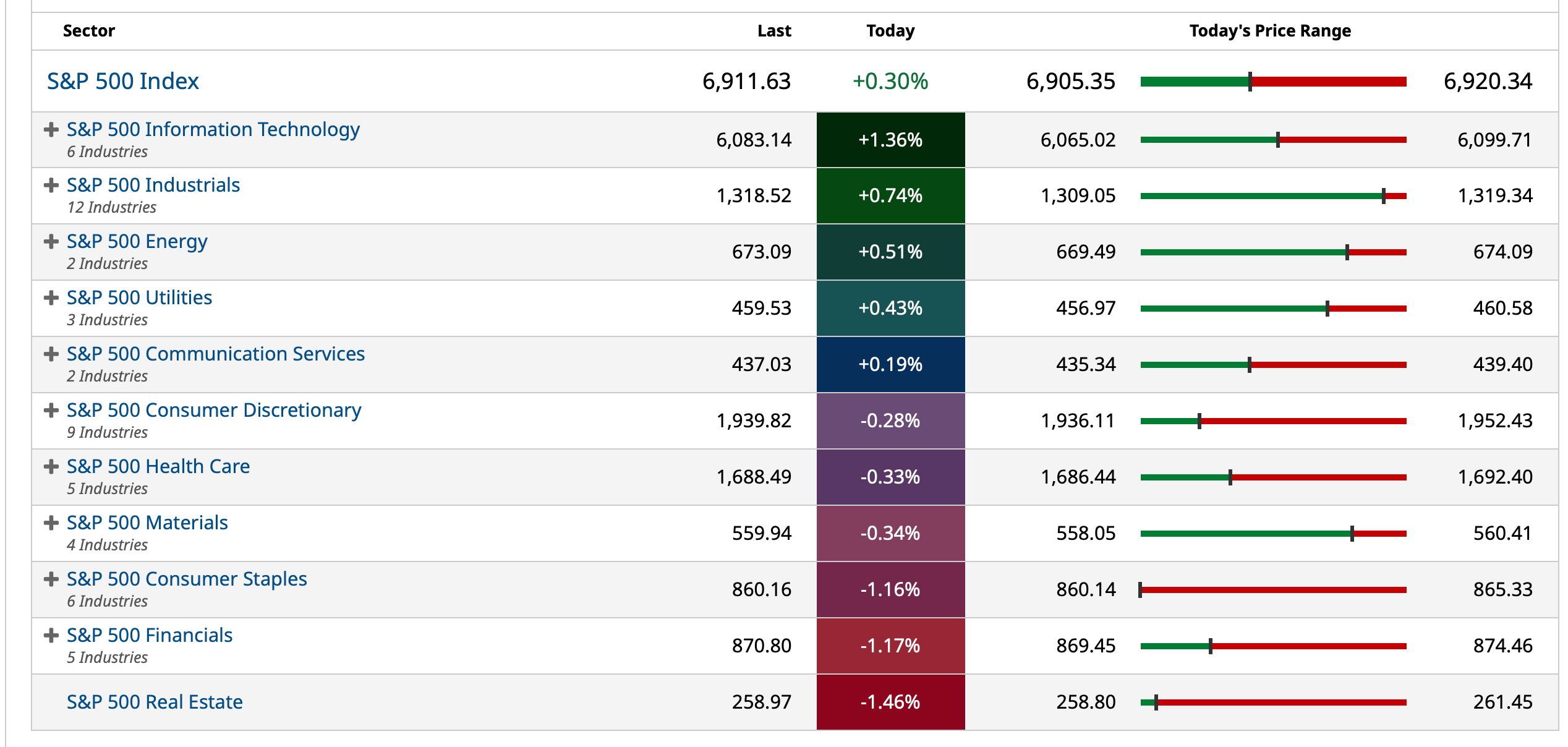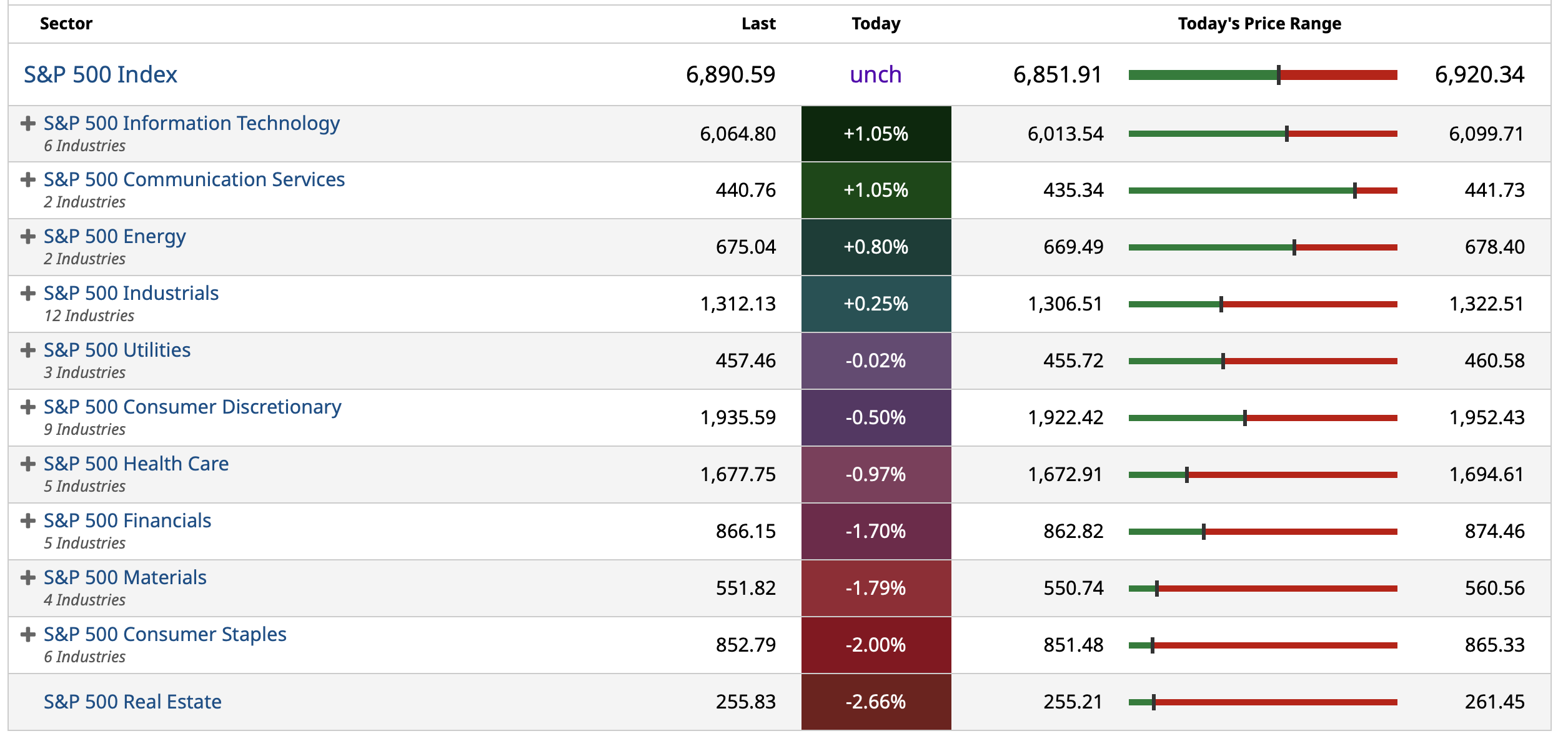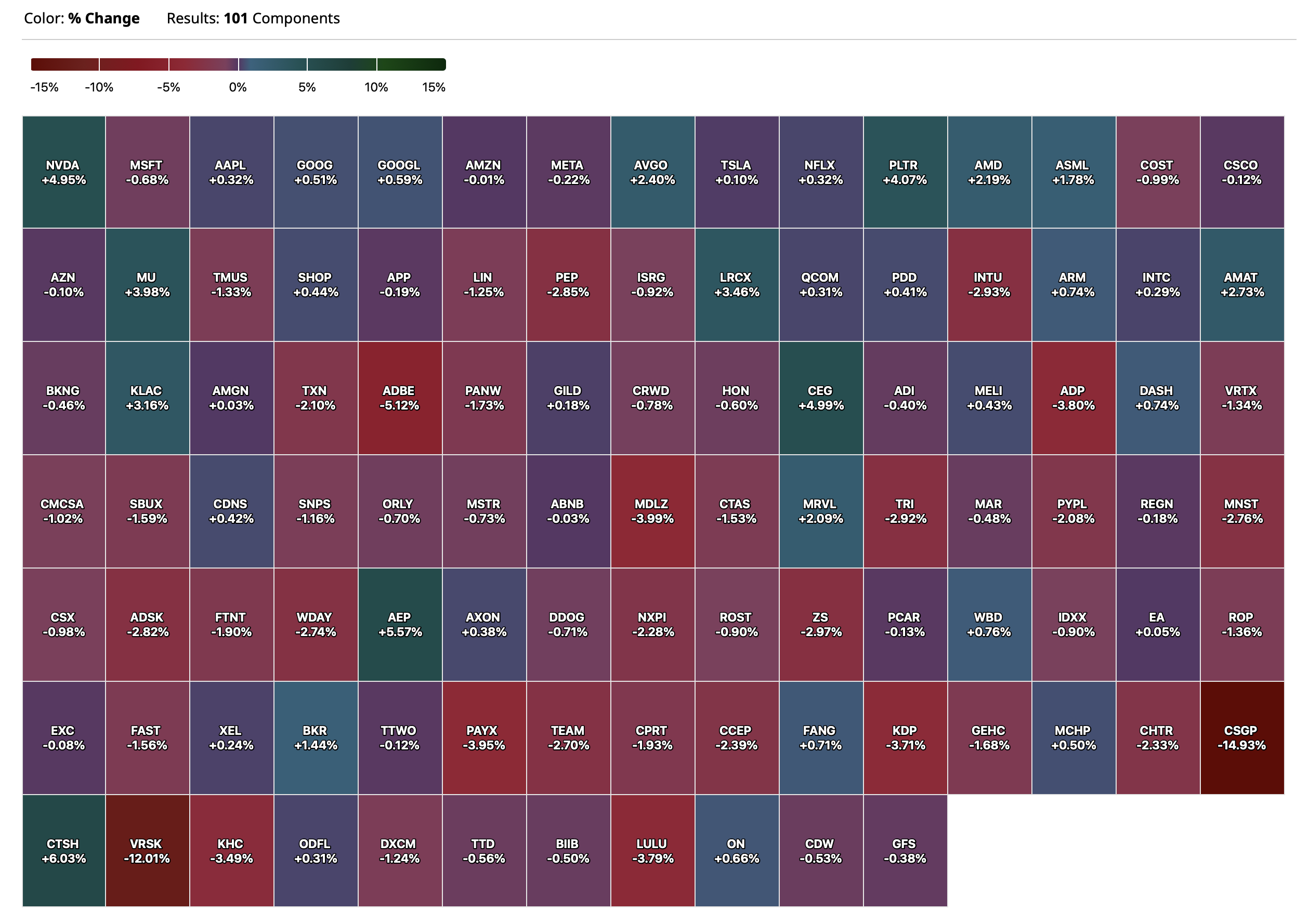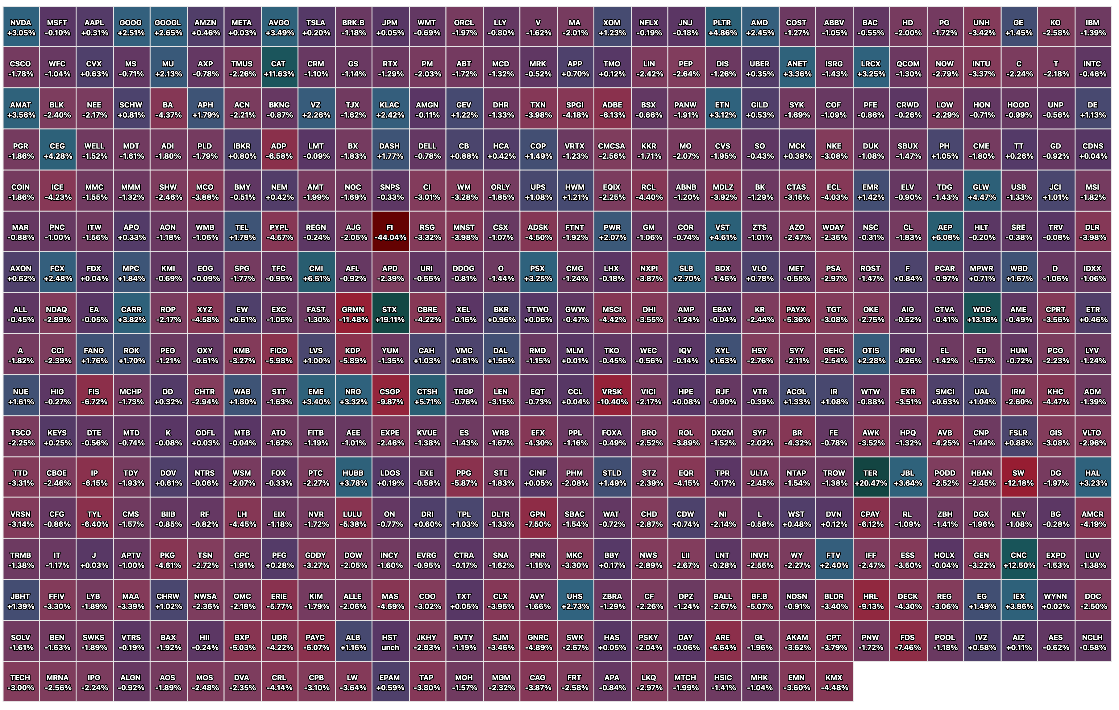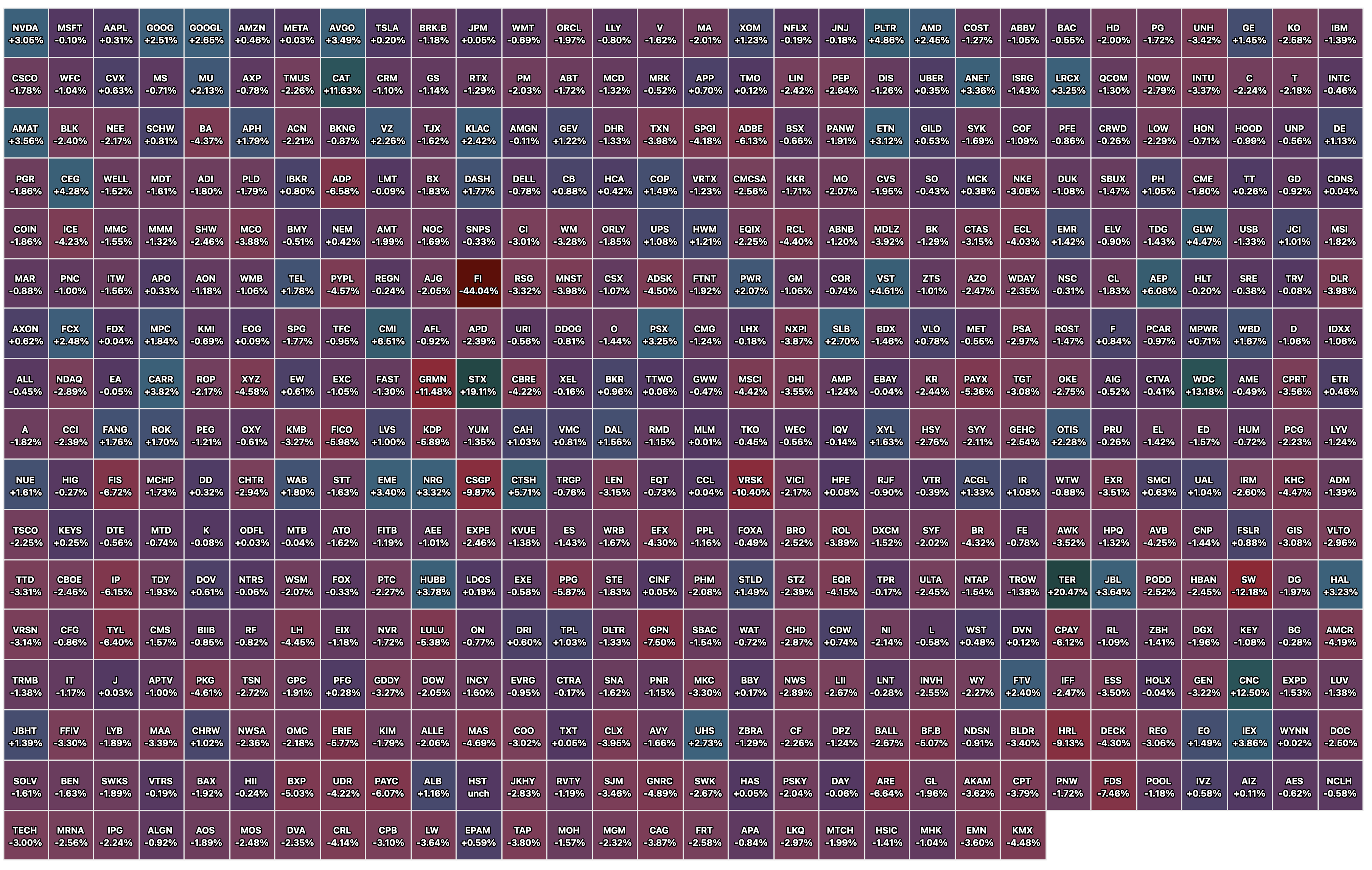 Closing S&P 500 Index Heat Map