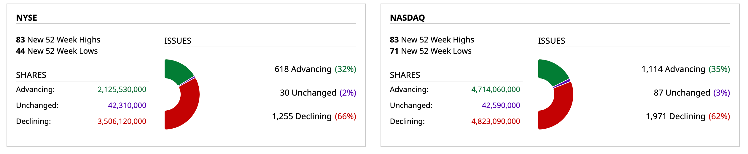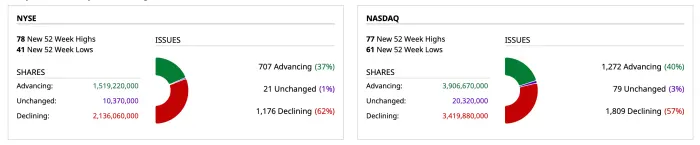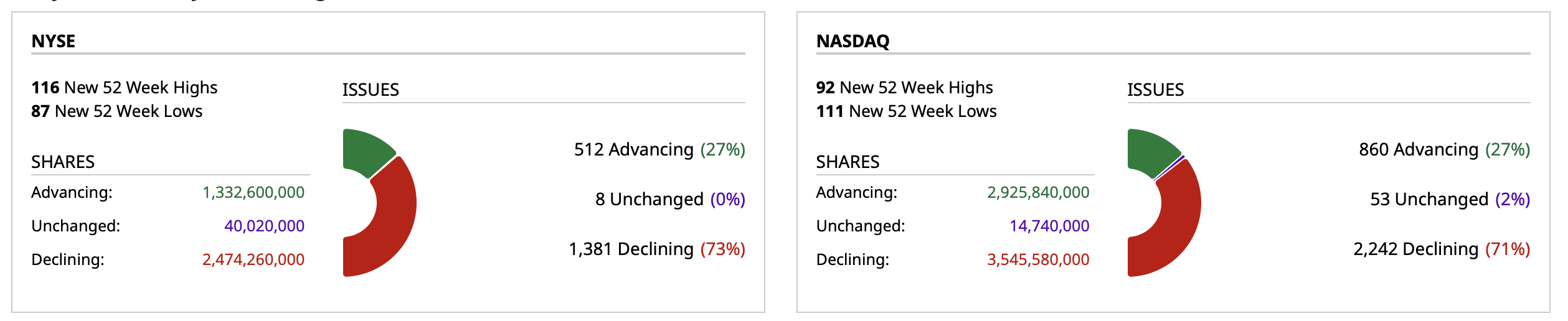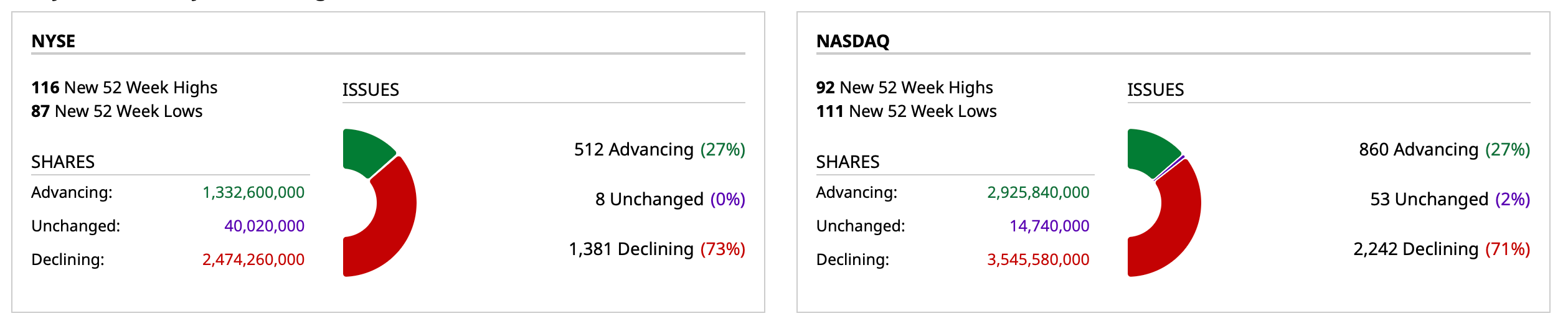 - NASDAQ volume 5% below its one-month average