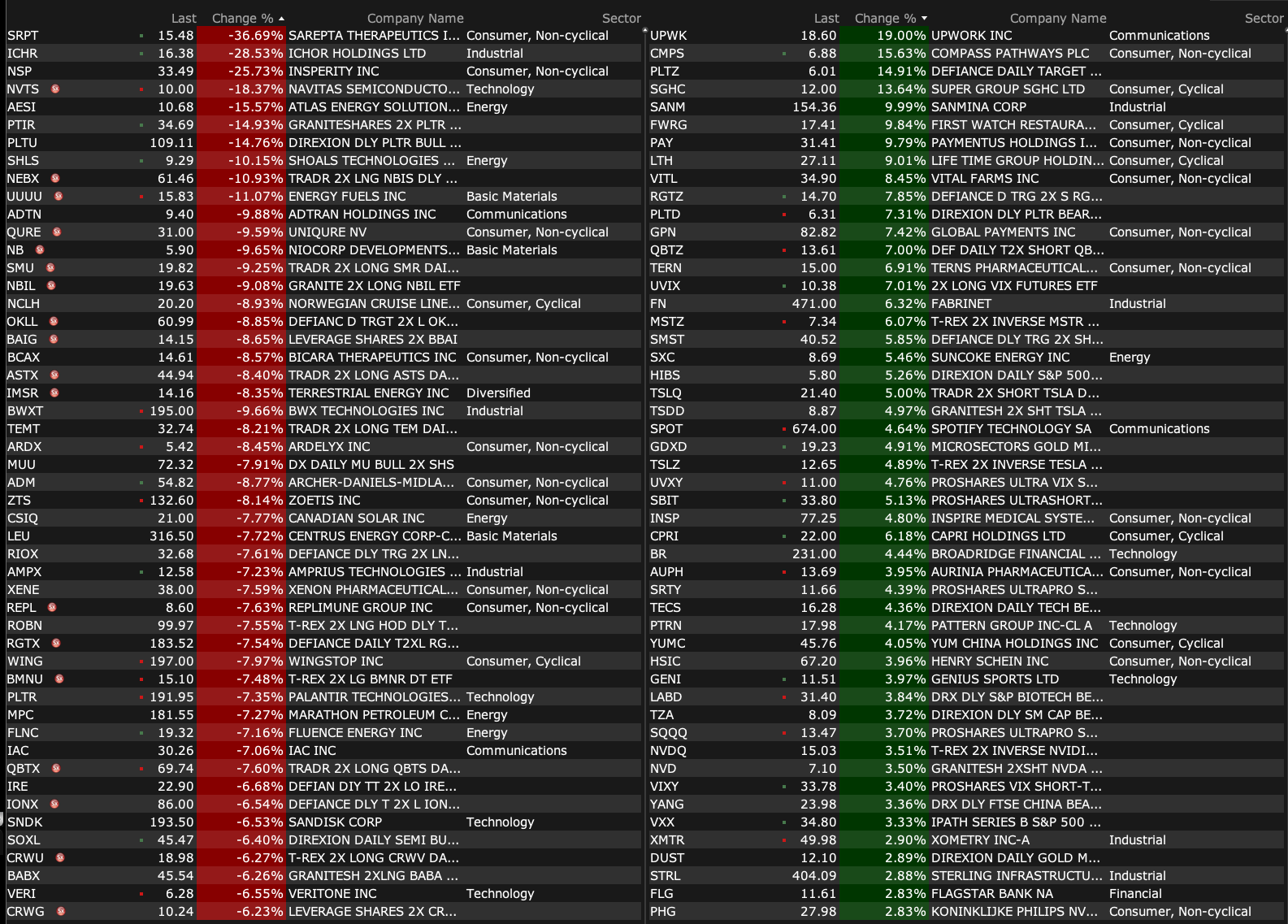 -SRPT -36% (earnings)