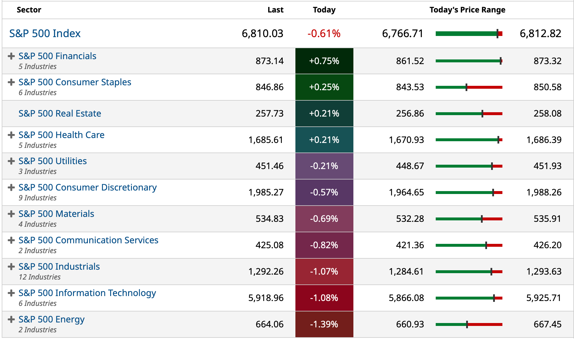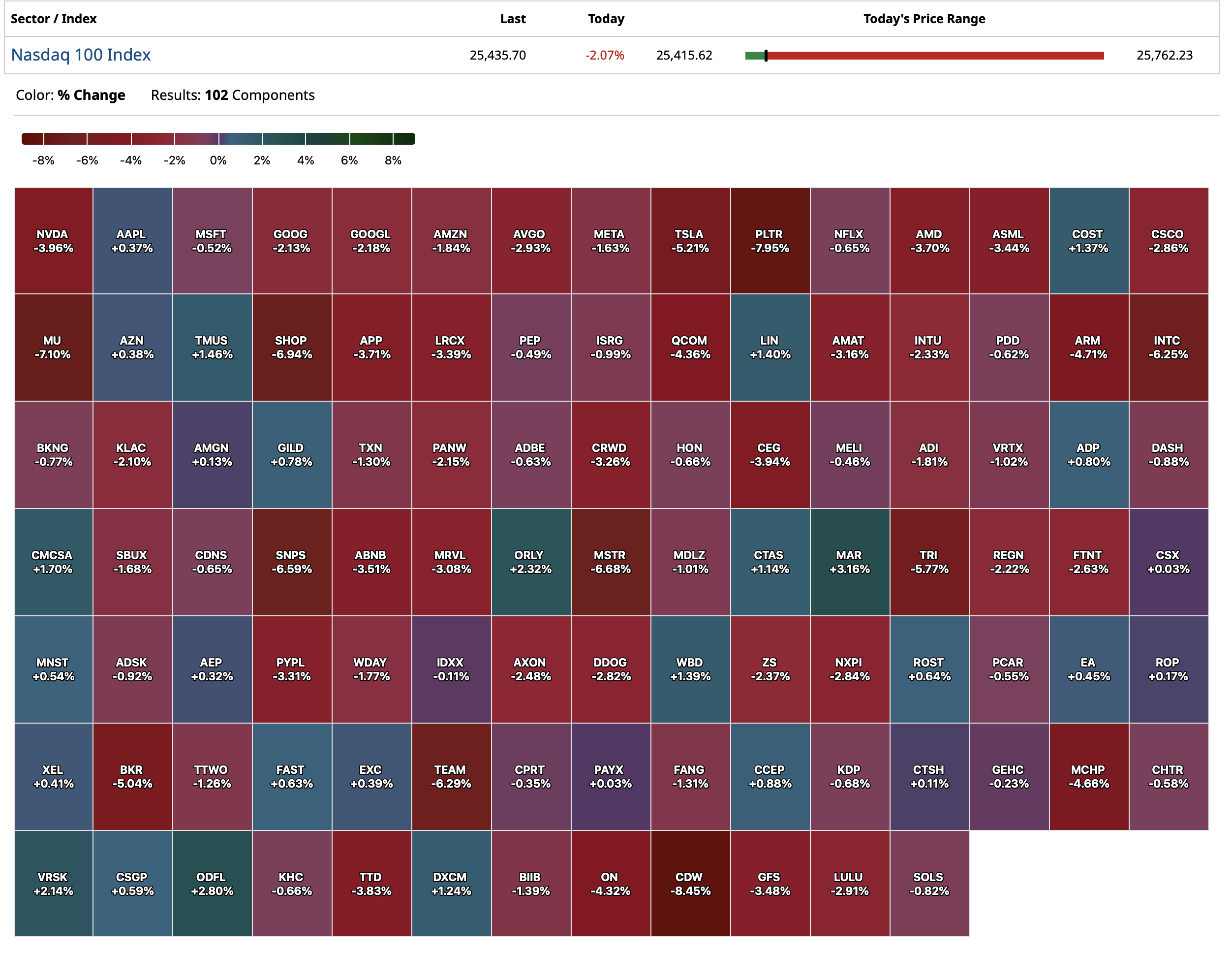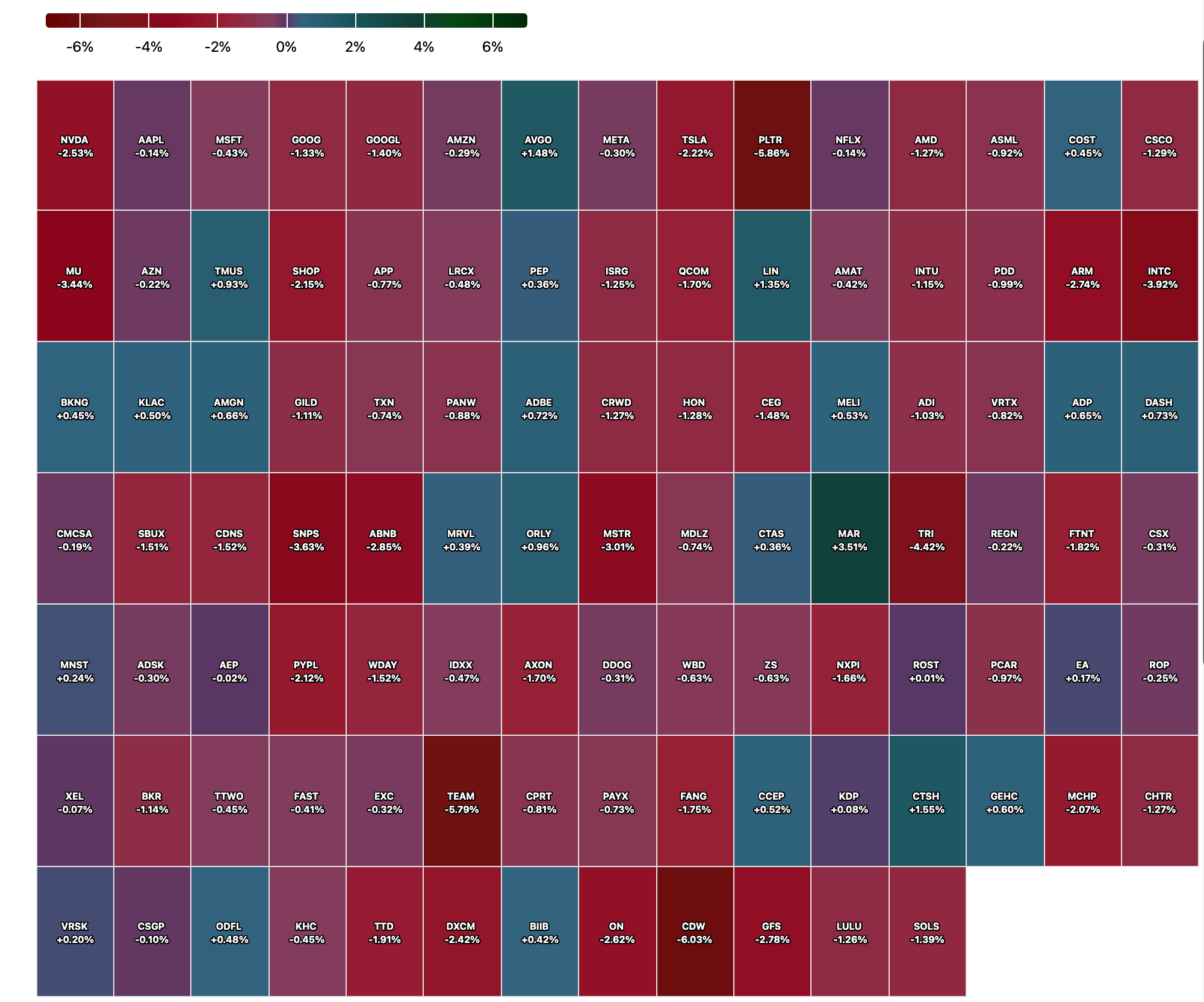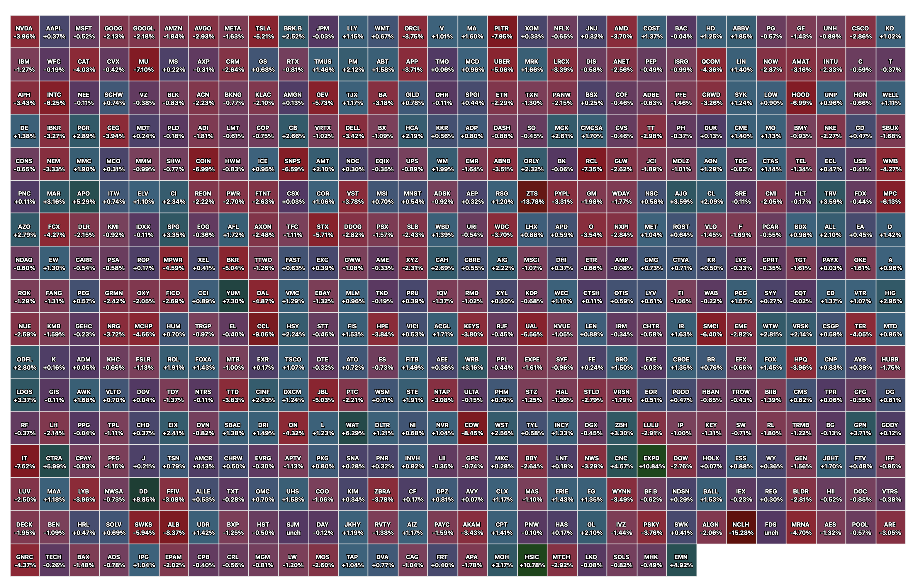 Closing S&P 500 Heat Map