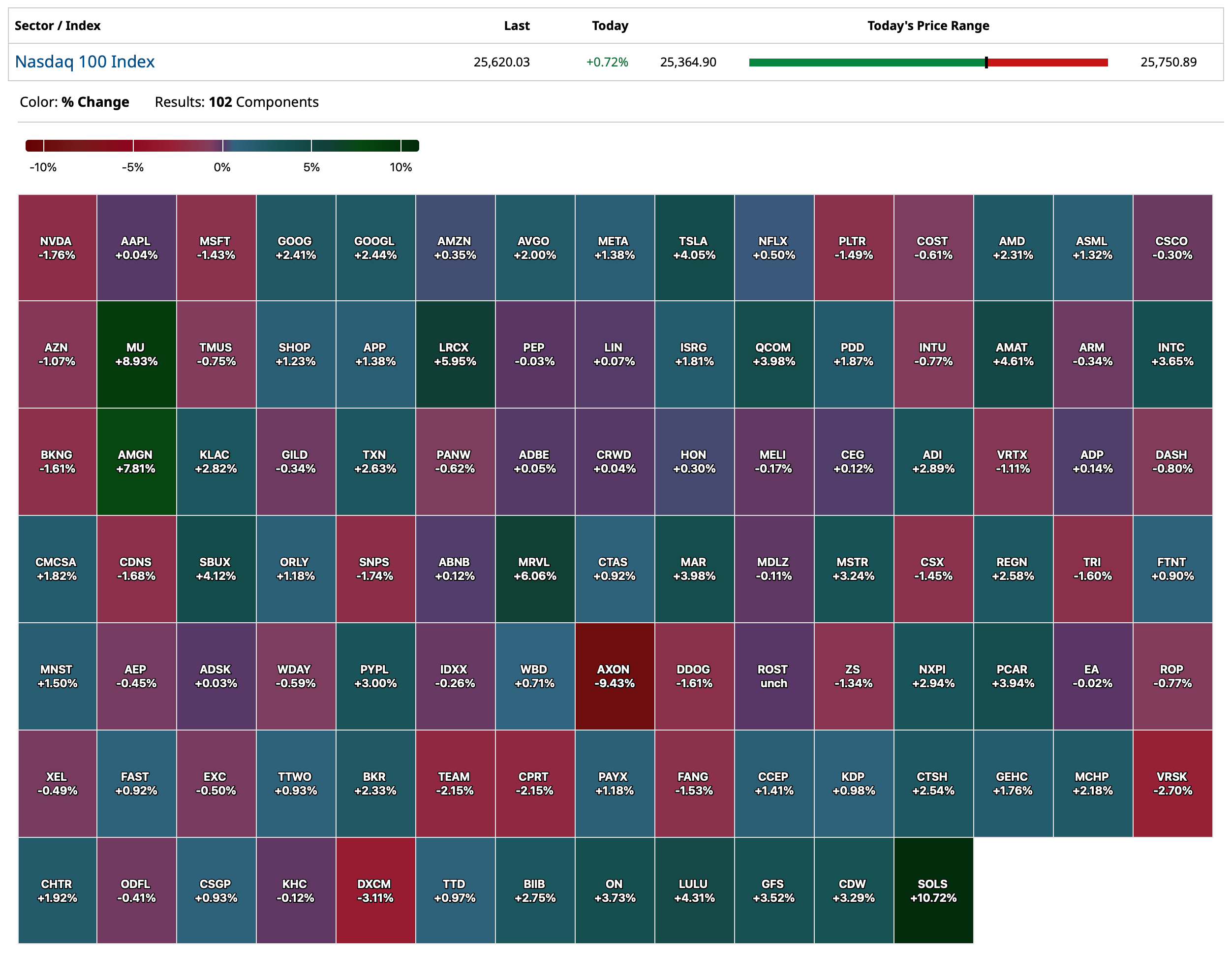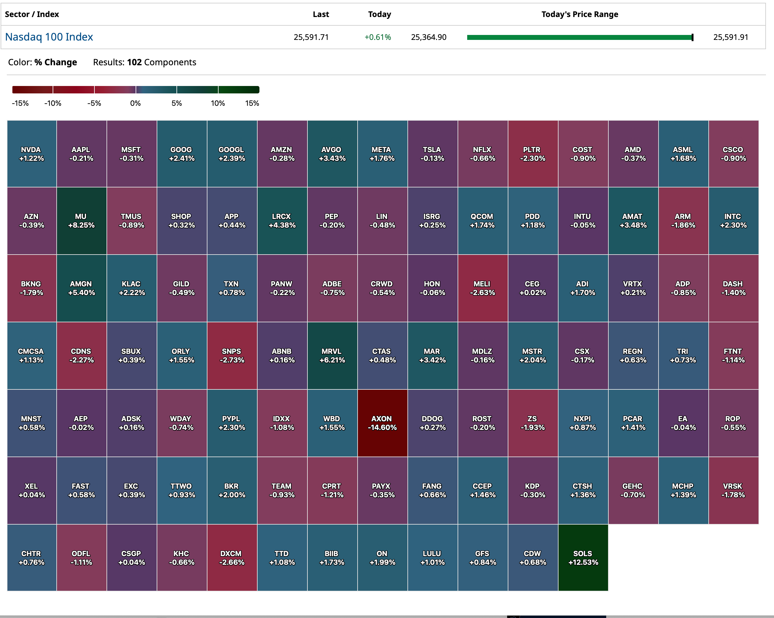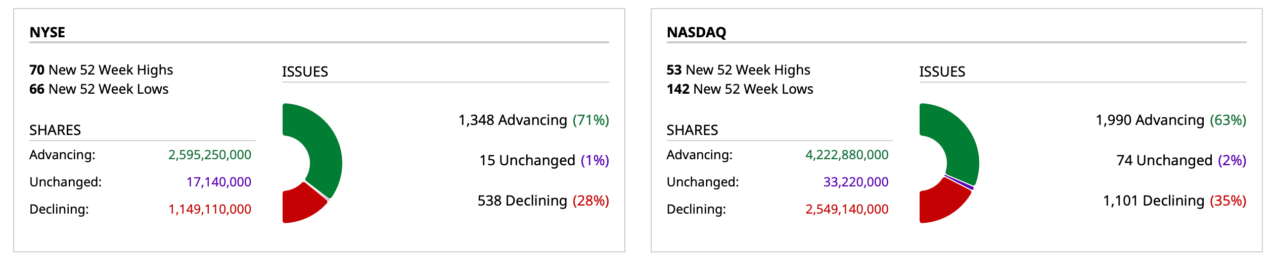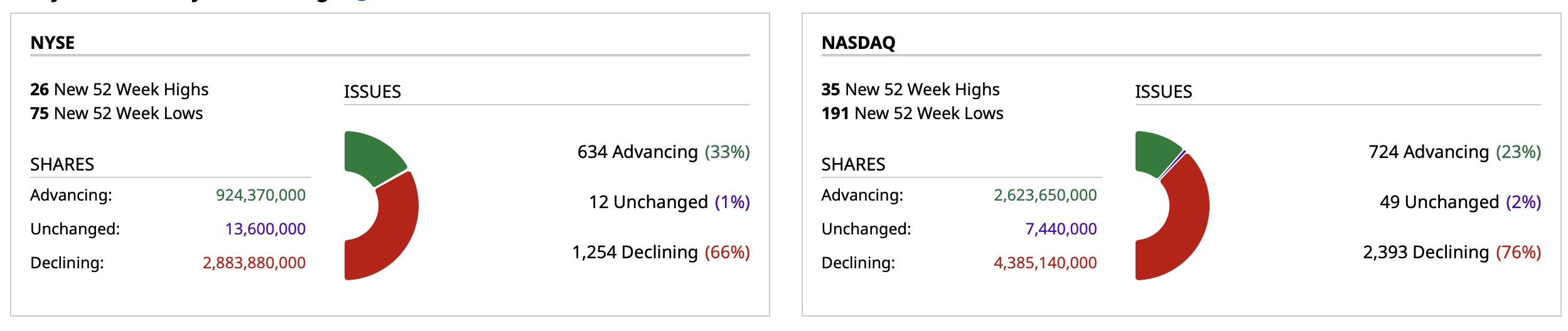 - Nasdaq volume 6% below its one-month average;