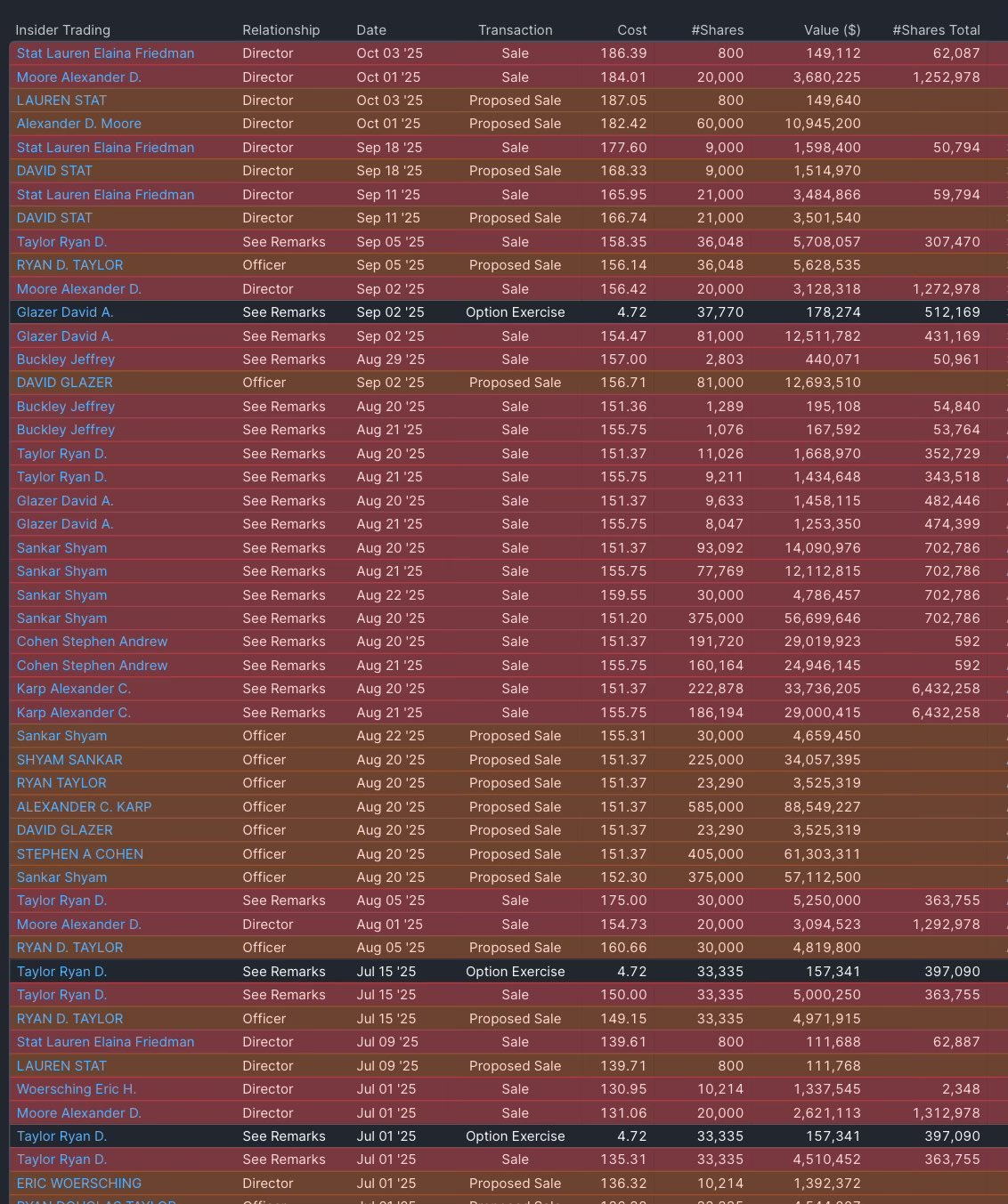 Here are the recent insider sales at Palantir (PLTR) :