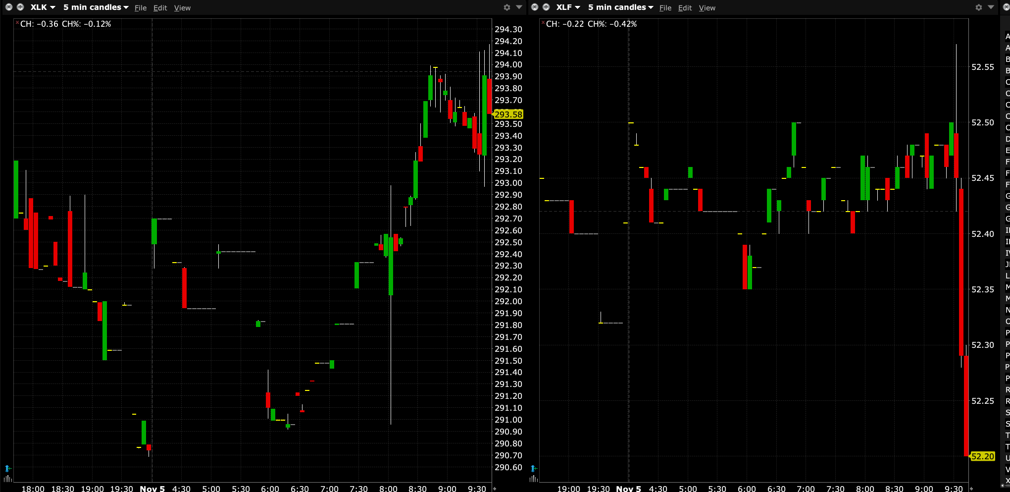 I am not sure why, but S&P futures were -53 and Nasdaq futures were -295 at one point (around 8:15 PM) in the evening — where I added to my index longs — moving off a delta-neutral position against short index calls and to a net long position.