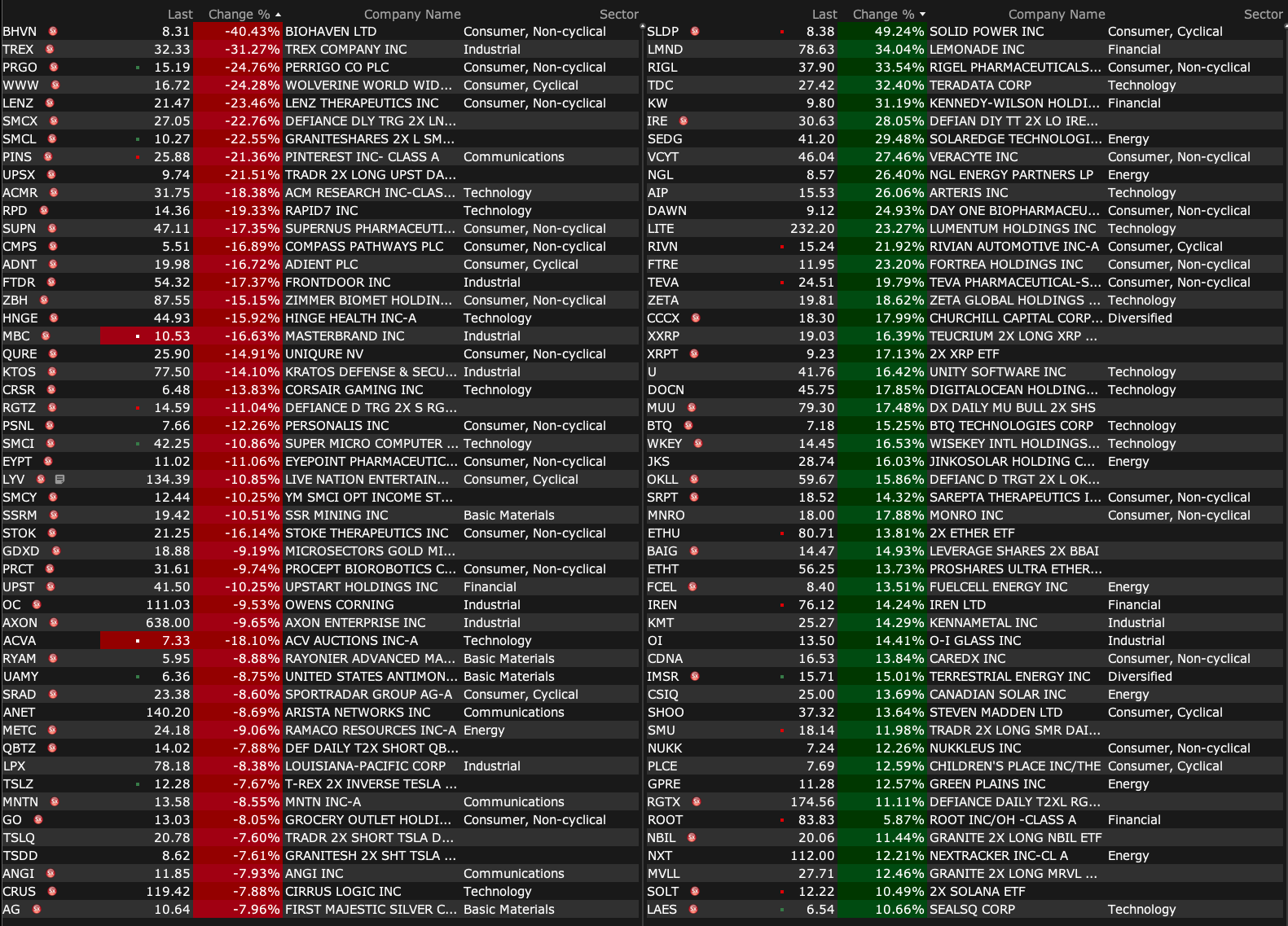 -TREX -36% (earnings, guidance)