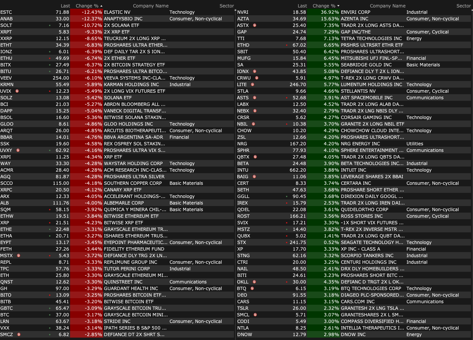 -ESTC -12% (earnings, guidance)